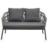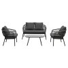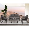 Tato elegantní zahradní sedací souprava je perfektní volbou pro každou venkovní terasu či zahradu. Je vyrobena z odolného polyratanu v šedém odstínu, který dodává nábytku svěží a moderní vzhled. Konstrukce z kovu s práškovou úpravou v antracitové barvě zaručuje dlouhou životnost a stabilitu. Voděodolné polštáře poskytují maximální pohodlí a jsou ideální pro venkovní použití za každého počasí. Deska stolku je vyrobena z polywood materiálu, který má velmi dlouhou životnost a je odolný proti vnějším vlivům počasí.Tento set kombinuje styl a funkčnost, ať už chcete relaxovat nebo uspořádat venkovní posezení s přáteli. Souprava je navíc snadno udržovatelná a velmi praktická.