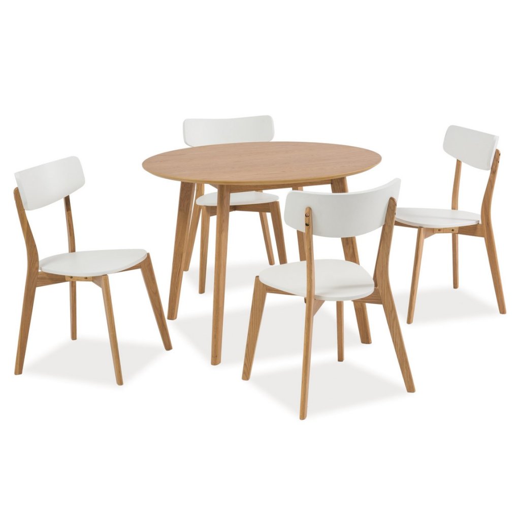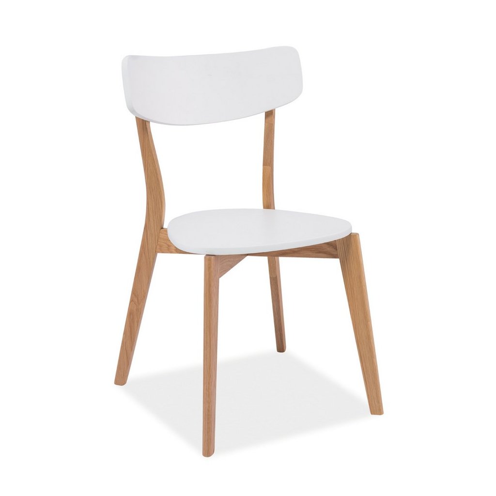 Dřevěná jídelní židle v bílé barvě s konstrukcí v dekoru dub KN1182