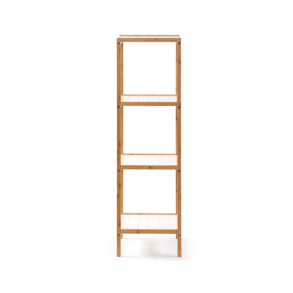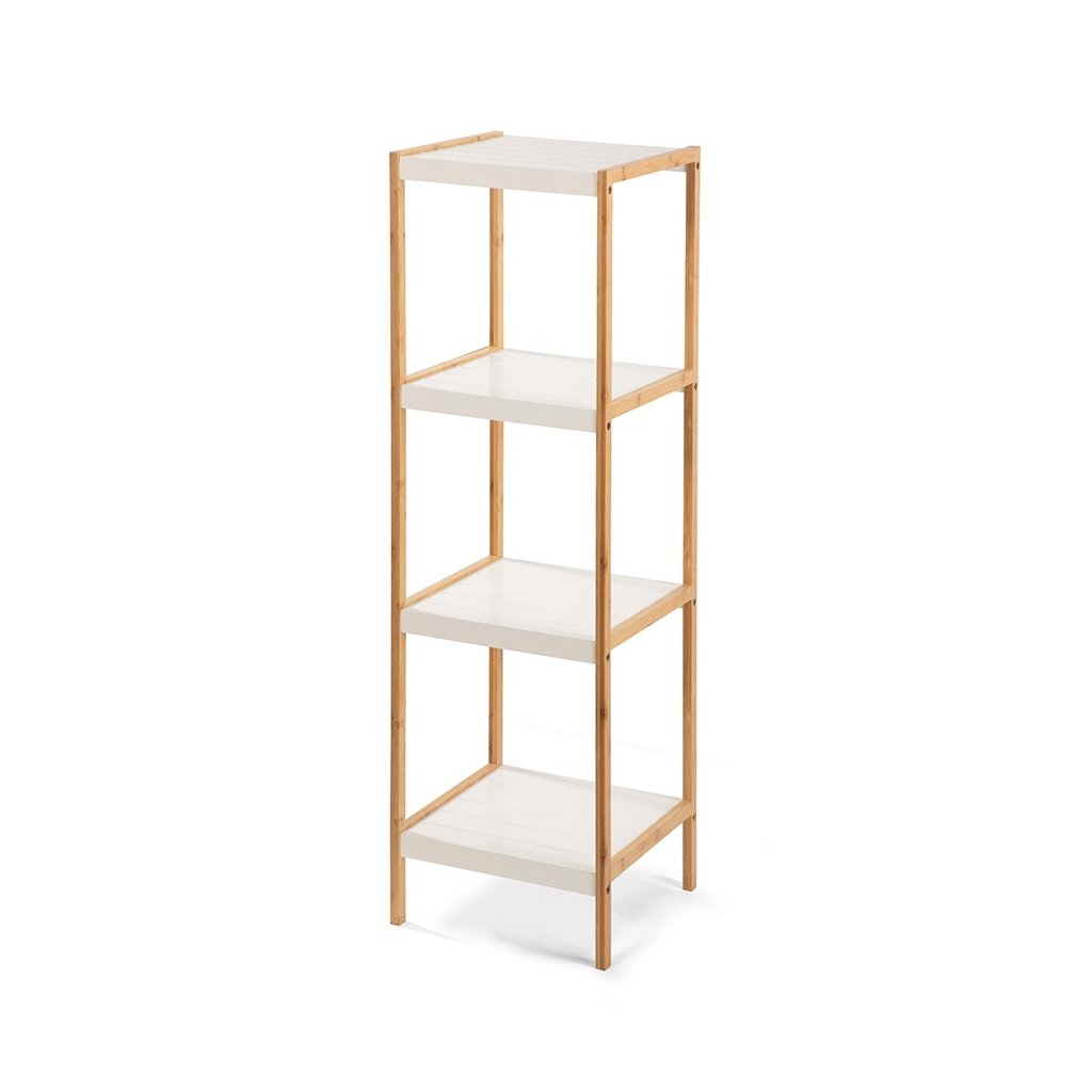 Moderní policový díl se čtyřmi úložnými policemi. Kombinace přírodního bambusového rámu a bílých polic působí elegantně a vzdušně. Stabilní konstrukce vhodná pro každodenní používání. Praktické využití pro uložení ručníků, kosmetiky, knih nebo dekorací. Hodí se do koupelny, ložnice, obývacího pokoje i předsíně. Jednoduchý design, který snadno zapadne do různých interiérů.