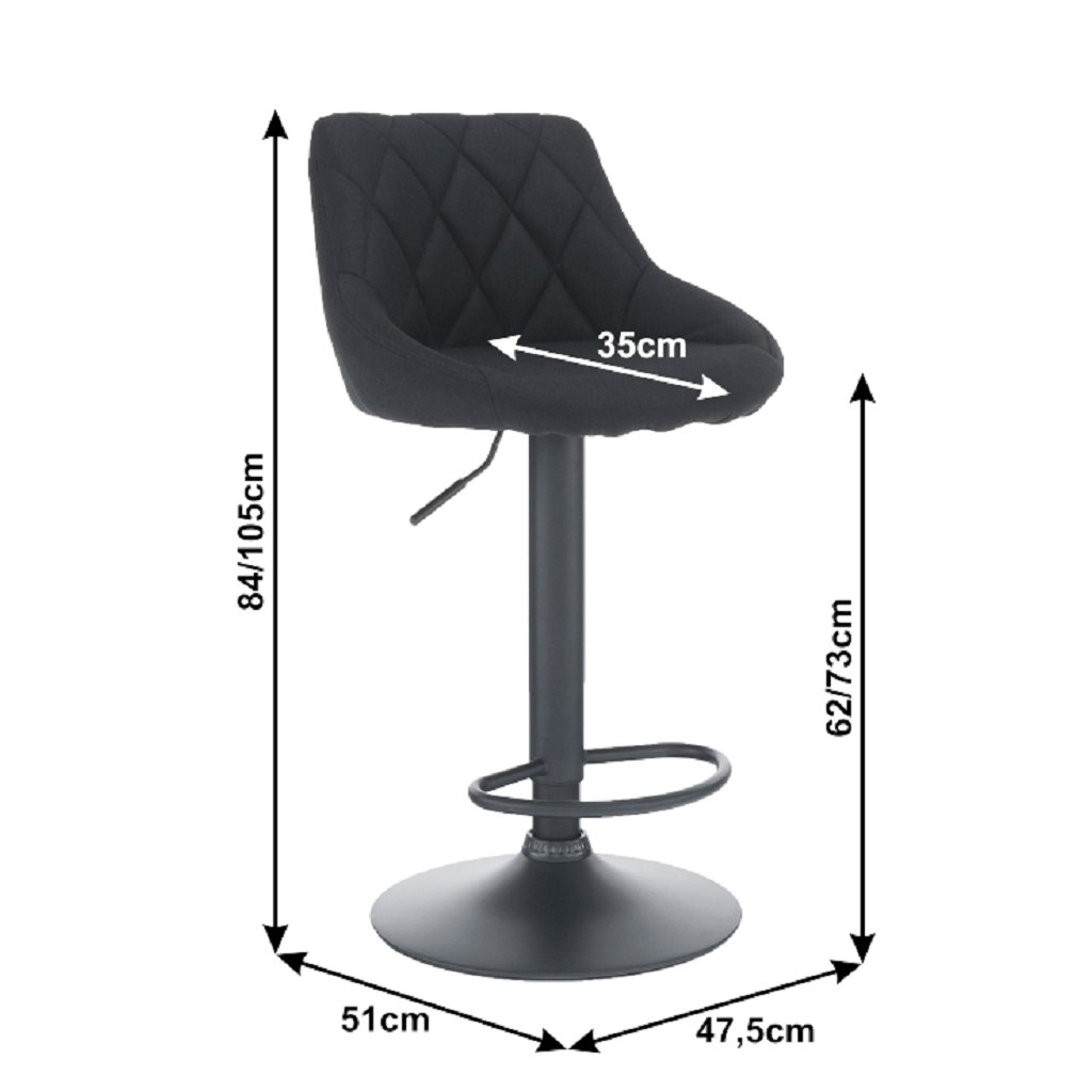 Kousek, který oslní. Originální čalouněná nastavitelná barová židle bude první věc, kterou spatří váš host. Sezení na takové židli bude vždy výjimečné kvůli její originalitě a netradičnímu vzhledu. Sedadlo je vyrobeno z látky v černém provedení, která se snadno kombinuje s jakýmkoli druhem nábytku - zdobně prošitá. Kvalitní kovová konstrukce je pevná a stabilní. Neblýská se, nezáří, je decentní v černé kovové barvě. Ačkoli se to na první pohled nezdá, tato židle se může pochlubit nosností až 100 kg. Hloubka sedu 35 cm. Výška sedu je 62 až 73 cm. Detailní rozměry židle najdete pod produktem v obrázkové galerii. Dodáváme v demontu.