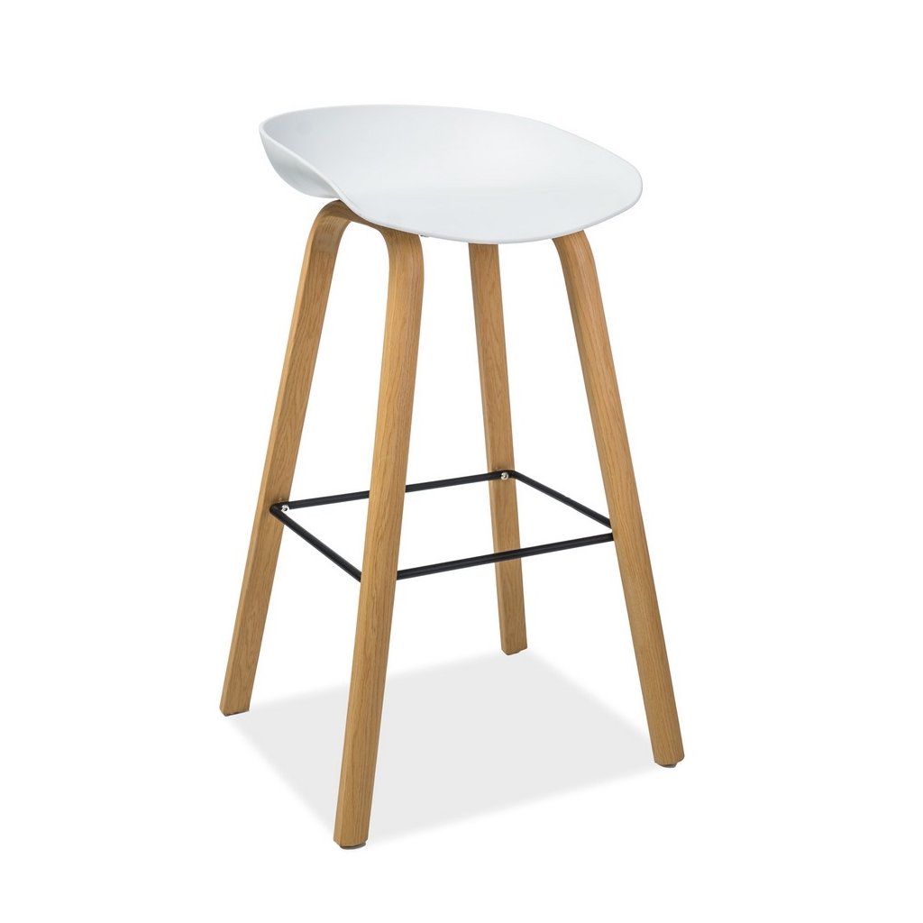 Tato barová židle jistě okouzlí příznivce severského stylu. Židle má zajímavě řešenou kovovou konstrukci v dekoru dubu. Sedák je z plastu PP v bílé barvě. V naší nabídce naleznete židli i v jiném barevném provedení.