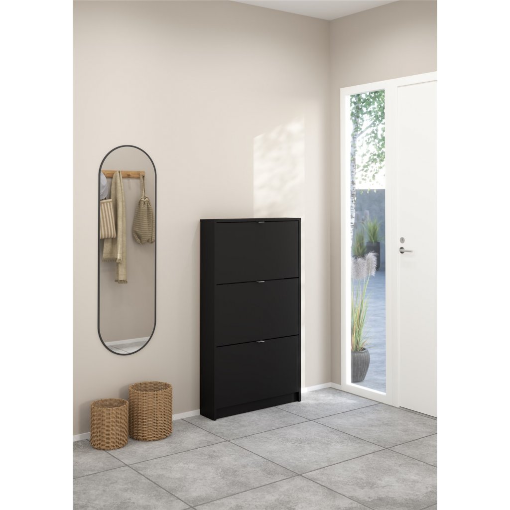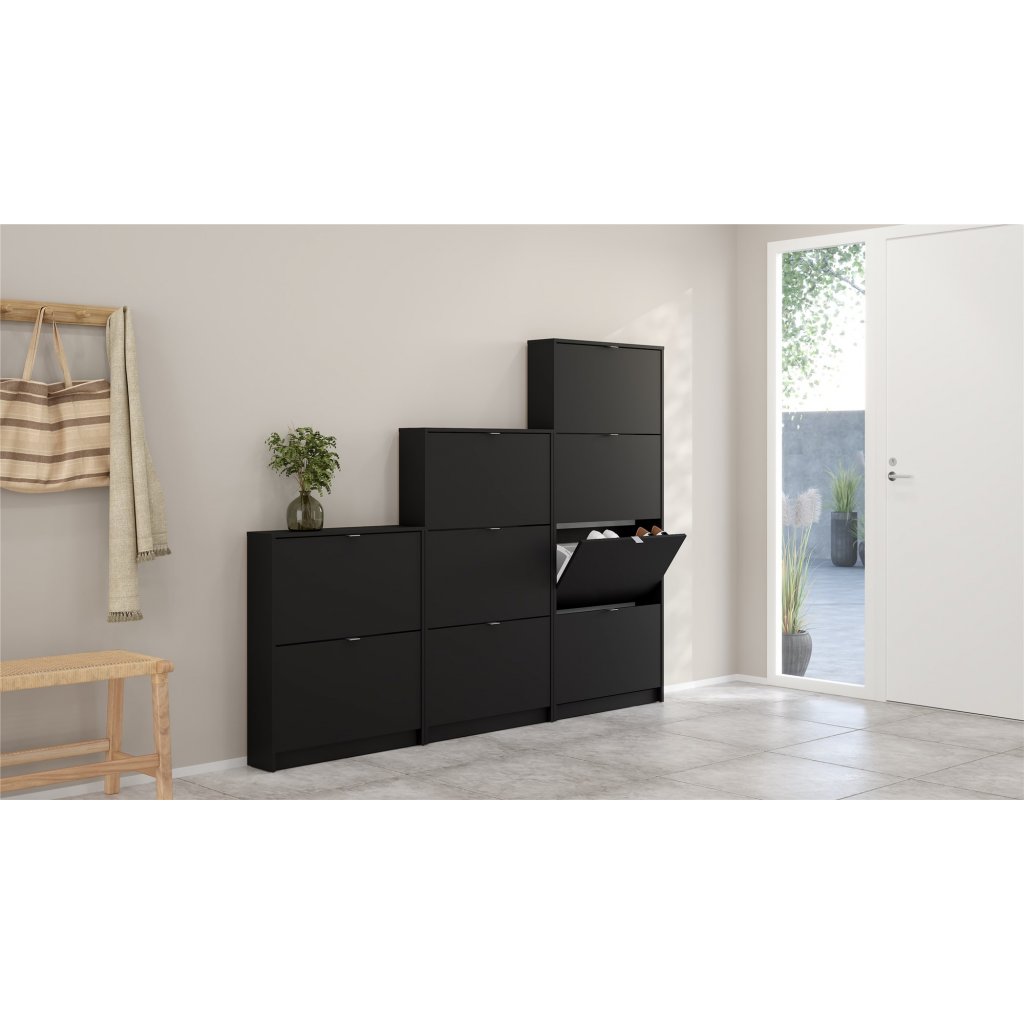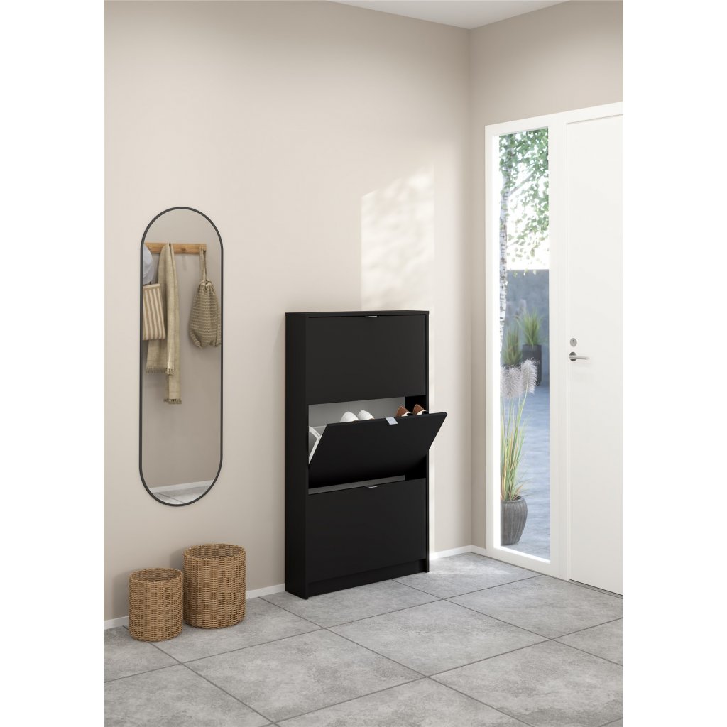 Zachraňte svou předsíň před nepořádkem a pořiďte si botník Shoes s výklopnými dvířky. Botník nabízíme v několika variantách, které můžete různě kombinovat a jen na Vás a Vašem prostoru záleží kolik si těchto botníků koupíte a jak si je uspořádáte. V tomto případě se fantazii meze nekladou. Pro inspiraci jsou přiloženy fotografie s vyobrazením, jaké jsou možnosti sestavení. Díky svému provedení pojme botník Shoes opravdu velké množství bot. Do každé výklopné přihrádky můžete ukládat boty ve dvou řadách. Vaše předsíň pak bude stále uklizená a zakopávání o boty se stane minulostí. Botník je vyrobený z lamina, které je odolné a snadné na údržbu a nabízíme ho v několika barevných provedeních. Je dodávaný v demontu a součástí balení je montážní návod včetně všech spojovacích prvků. Cena je uvedena za 1 kus botníku Shoes se třemi výklopnými přihrádkami. Vyobrazené doplňky a dekorace nejsou v ceně.