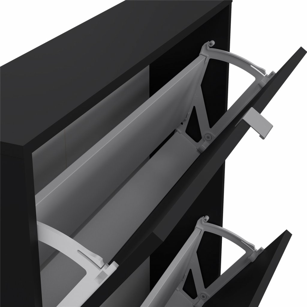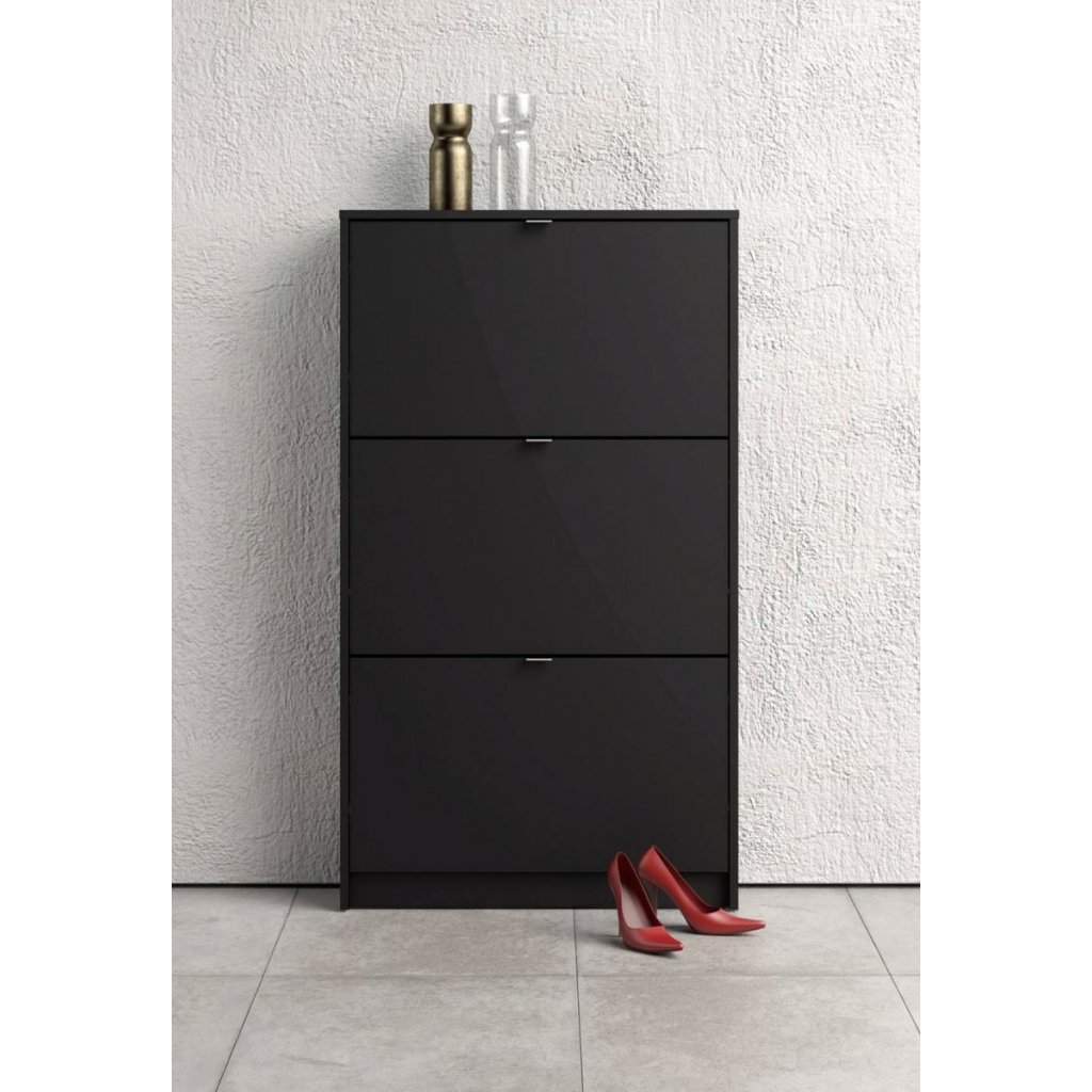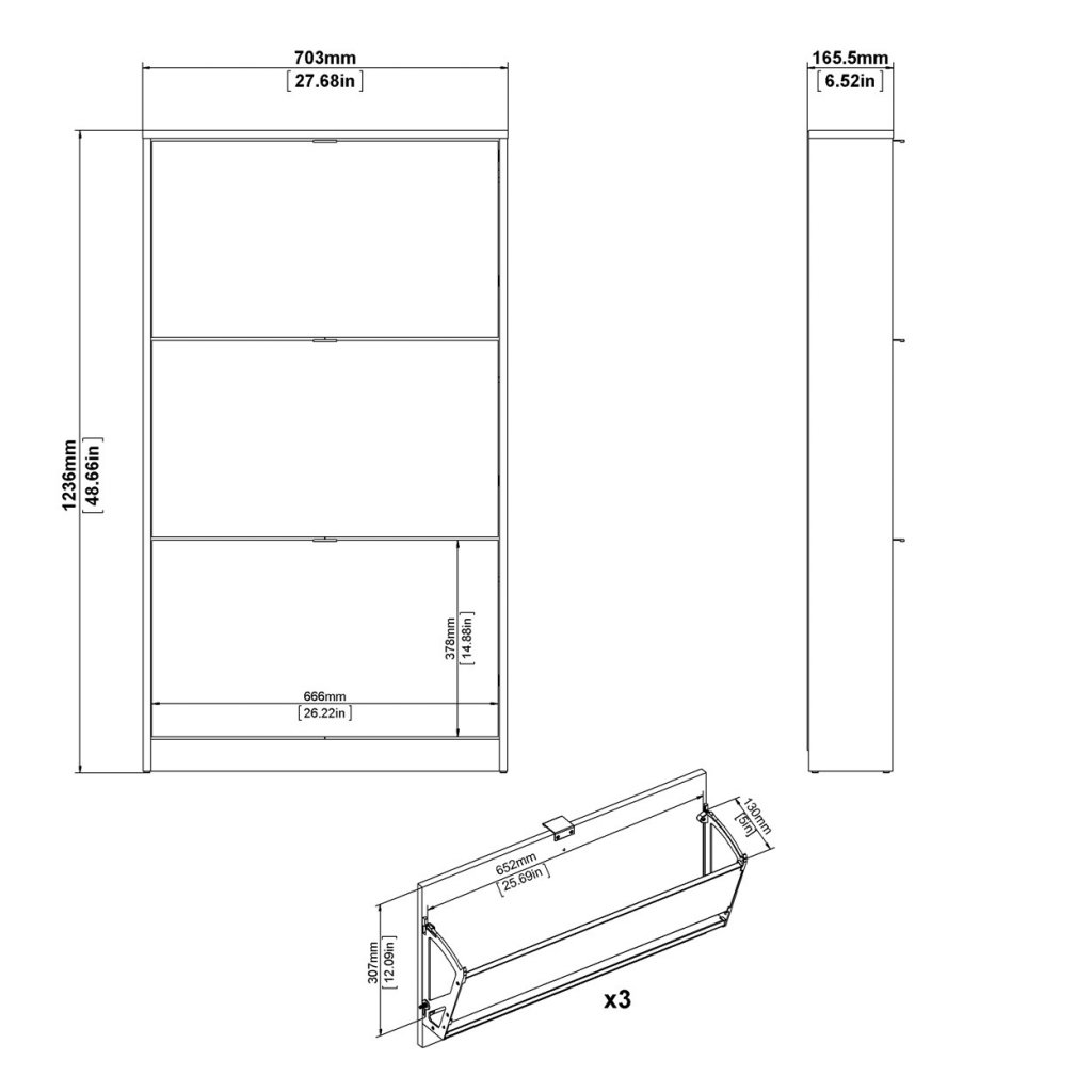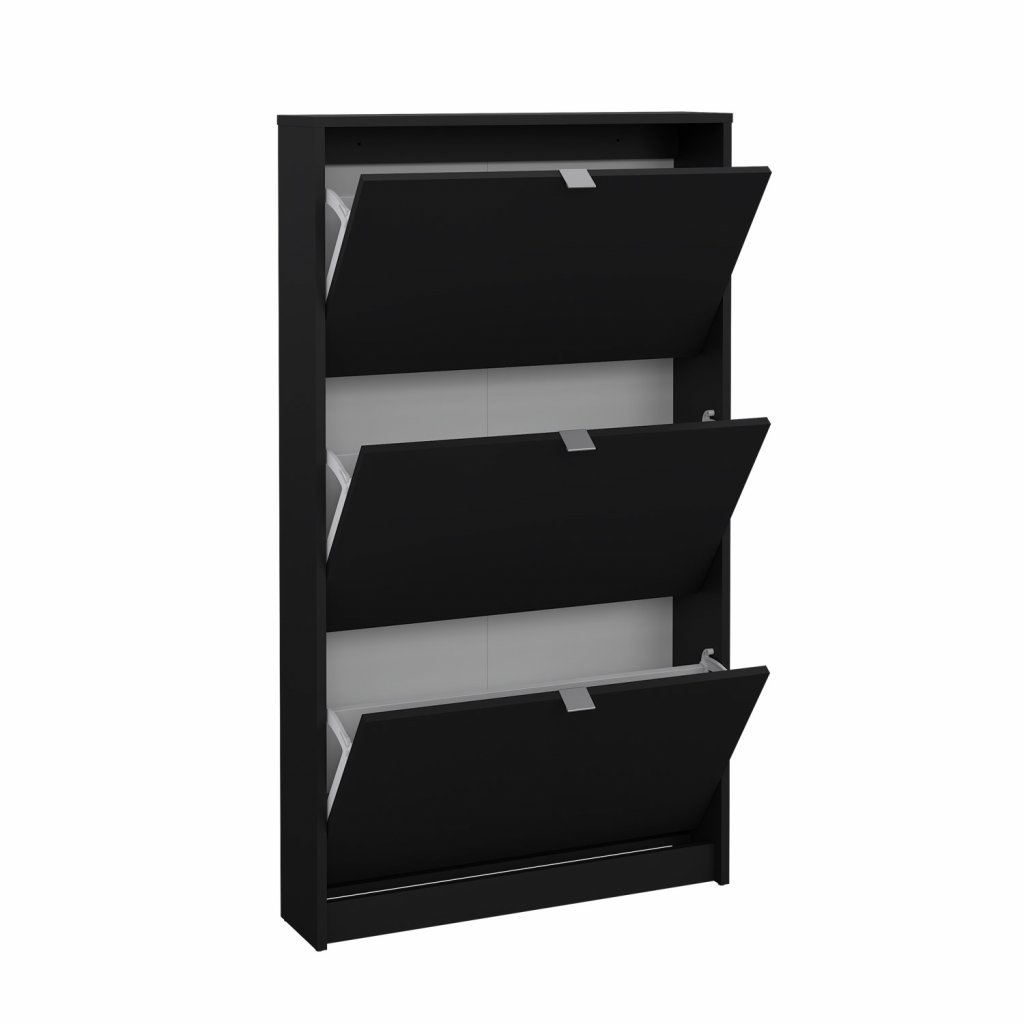 Zachraňte svou předsíň před nepořádkem a pořiďte si botník Shoes s výklopnými dvířky. Botník nabízíme v několika variantách, které můžete různě kombinovat a jen na Vás a Vašem prostoru záleží kolik si těchto botníků koupíte a jak si je uspořádáte. V tomto případě se fantazii meze nekladou. Pro inspiraci jsou přiloženy fotografie s vyobrazením, jaké jsou možnosti sestavení. Díky svému provedení pojme botník Shoes opravdu velké množství bot. Do každé výklopné přihrádky můžete ukládat boty ve dvou řadách. Vaše předsíň pak bude stále uklizená a zakopávání o boty se stane minulostí. Botník je vyrobený z lamina, které je odolné a snadné na údržbu a nabízíme ho v několika barevných provedeních. Je dodávaný v demontu a součástí balení je montážní návod včetně všech spojovacích prvků. Cena je uvedena za 1 kus botníku Shoes se třemi výklopnými přihrádkami. Vyobrazené doplňky a dekorace nejsou v ceně.