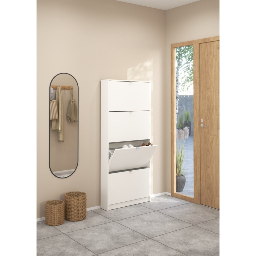 Po prostorném botníku touží každý milovník bot i početná rodina. Boty se hromadí v předsíni, vzniká chaos a zakopávání o boty je na denním pořádku. Zachraňte svou předsíň před nepořádkem a pořiďte si botník Shoes s výklopnými dvířky. Botník nabízíme v několika variantách, které můžete různě kombinovat a jen na Vás a Vašem prostoru záleží kolik si těchto botníků koupíte a jak si je uspořádáte. V tomto případě se fantazii meze nekladou. Pro inspiraci jsou přiloženy fotografie s vyobrazením, jaké jsou možnosti sestavení. Vaše předsíň pak bude stále uklizená a zakopávání o boty se stane minulostí. Botník je vyrobený z lamina, které je odolné a snadné na údržbu a nabízíme ho v několika barevných provedeních. Je dodávaný v demontu a součástí balení je montážní návod včetně všech spojovacích prvků. Cena je uvedena za 1 kus botníku Shoes se čtyřmi výklopnými přihrádkami. Vyobrazené doplňky a dekorace nejsou v ceně.