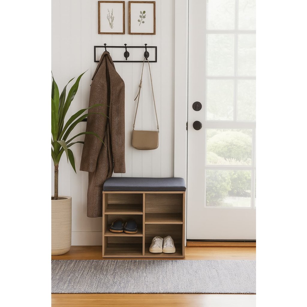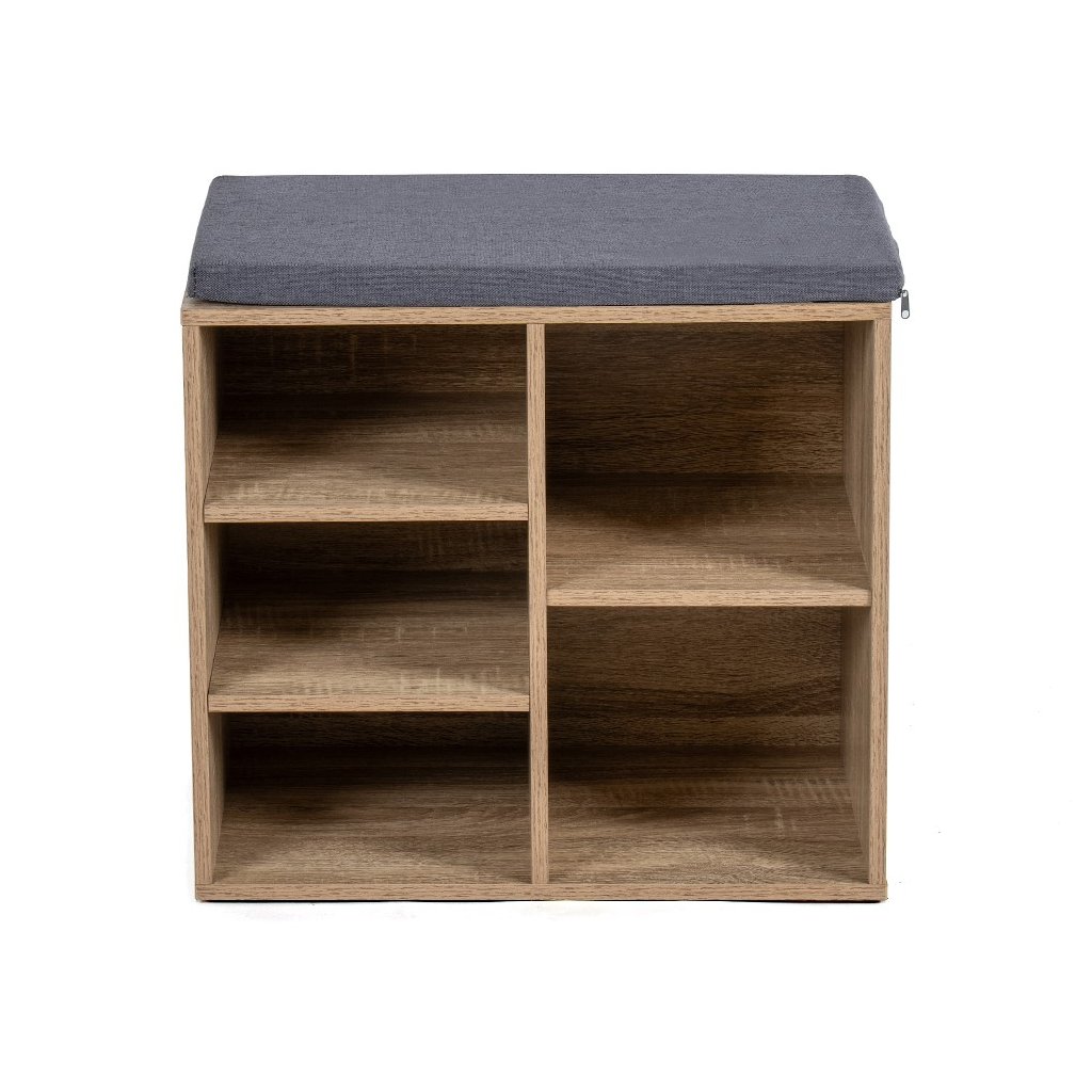 Botník s pohodlným čalouněným sedákem pro snadné obouvání. Čtyři prostorné přihrádky vhodné pro boty, tašky či doplňky. Otevřený design zajišťuje snadný přístup a dobré větrání obuvi. Stabilní a odolná konstrukce pro každodenní využití. Praktické řešení do předsíně nebo chodby, kombinuje lavici a úložný prostor.
