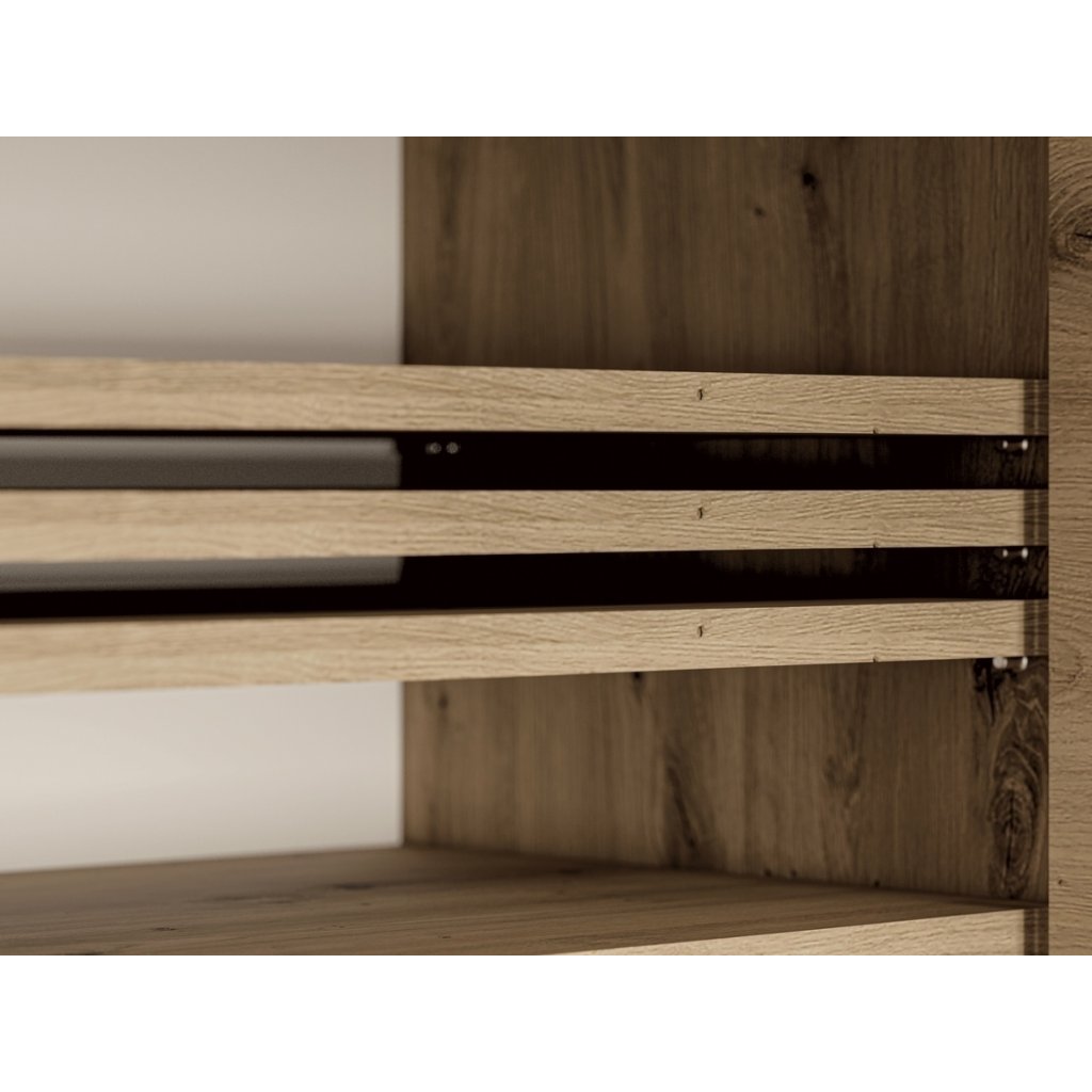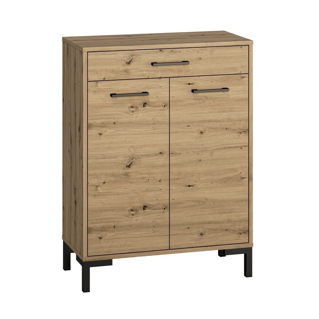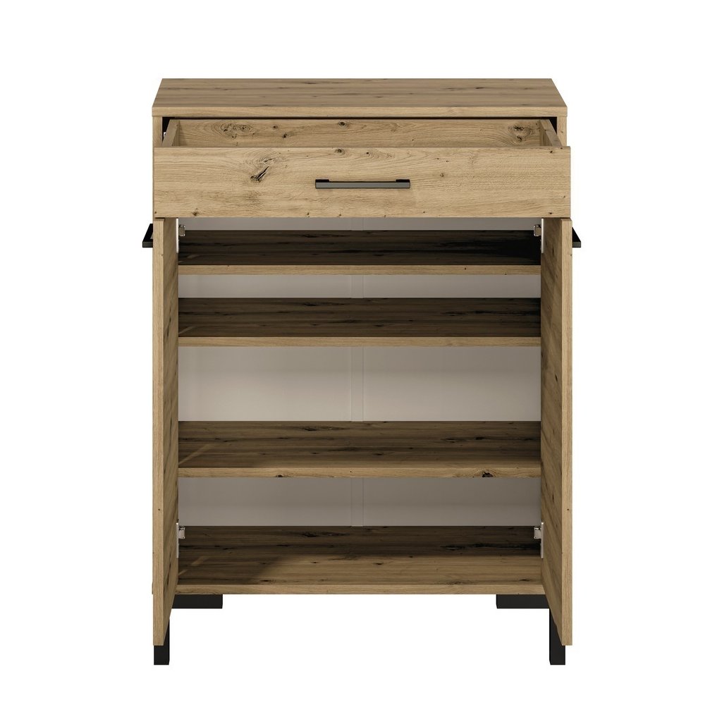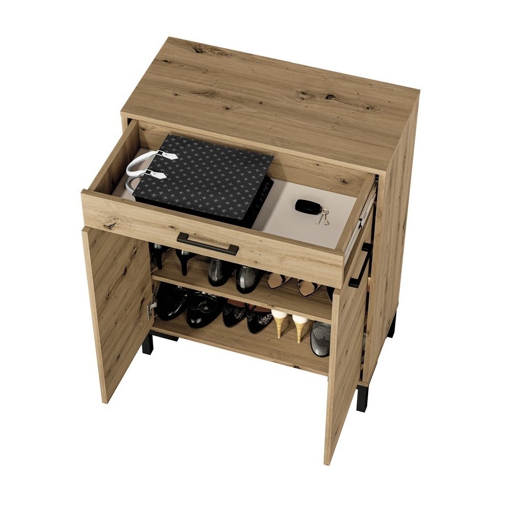 Botník dvoudveřový je vyroben z desky LTD v barvě dub artisan. V horní části je praktická zásuvka. Úchyty jsou plastové. Možnost dokoupení dalších segmentů. Dodáváme v demontovaném stavu.