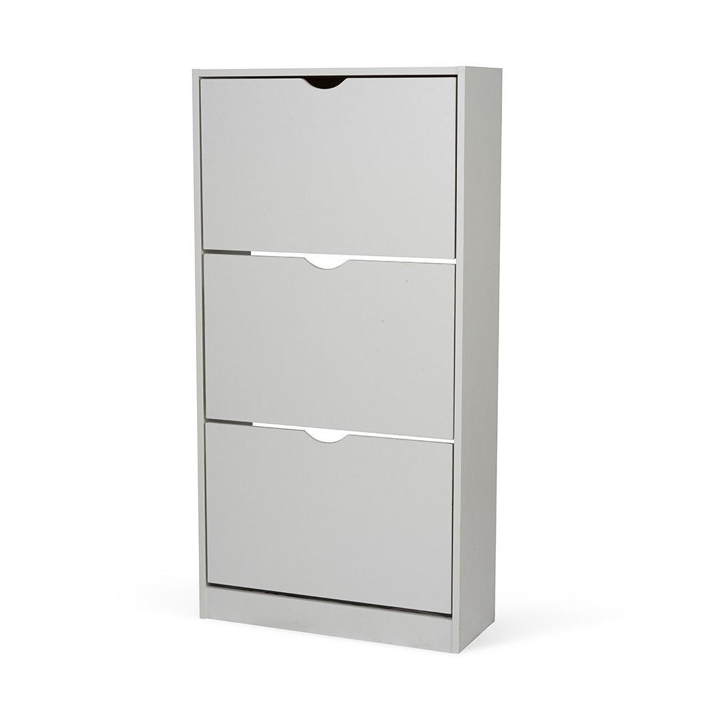 Botník s kompaktním a úzkým designem, ideální do menších prostor. Tři výklopné úložné prostory pro obuv. Jednoduché otevírání pomocí výřezů místo úchytek. Stabilní konstrukce pro každodenní používání. Moderní a minimalistický vzhled vhodný do předsíně či chodby.