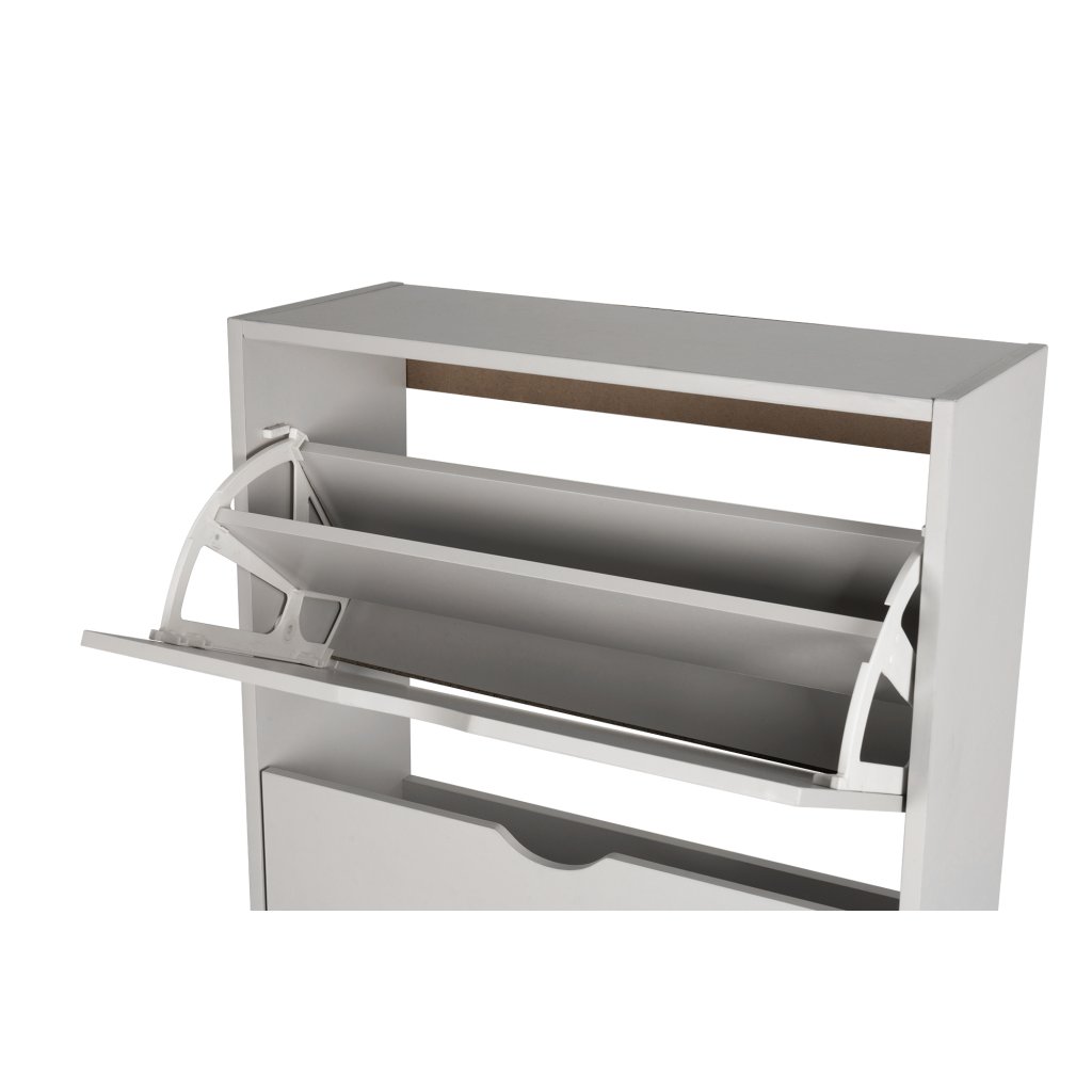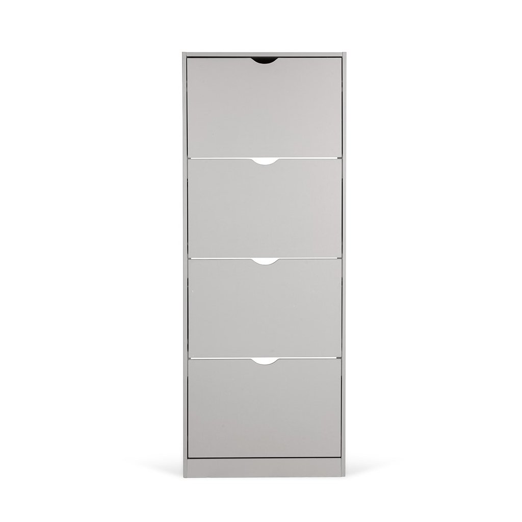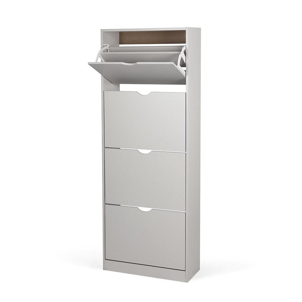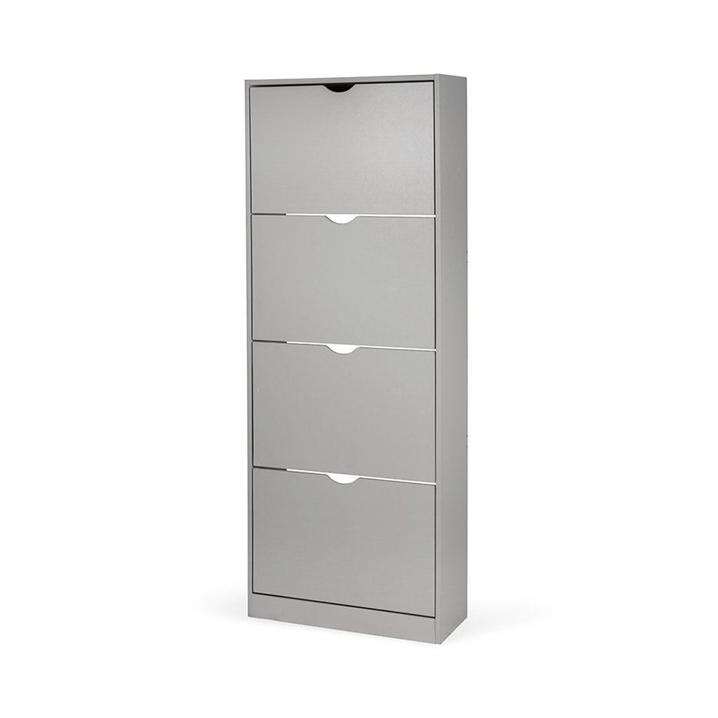 Botník s kompaktním a úzkým designem, ideální do menších prostor. Čtyři výklopné úložné prostory pro obuv. Jednoduché otevírání pomocí výřezů místo úchytek. Stabilní konstrukce pro každodenní používání. Moderní a minimalistický vzhled vhodný do předsíně či chodby.