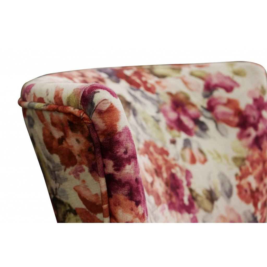 86;72;105; Romantický ušák plný jemnosti Klasický tvar ušák Bílá látka se vzorem růží Vysoké opěradlo s ušima Měkký a pohodlný sedák Stabilní konstrukce Ideální na relax