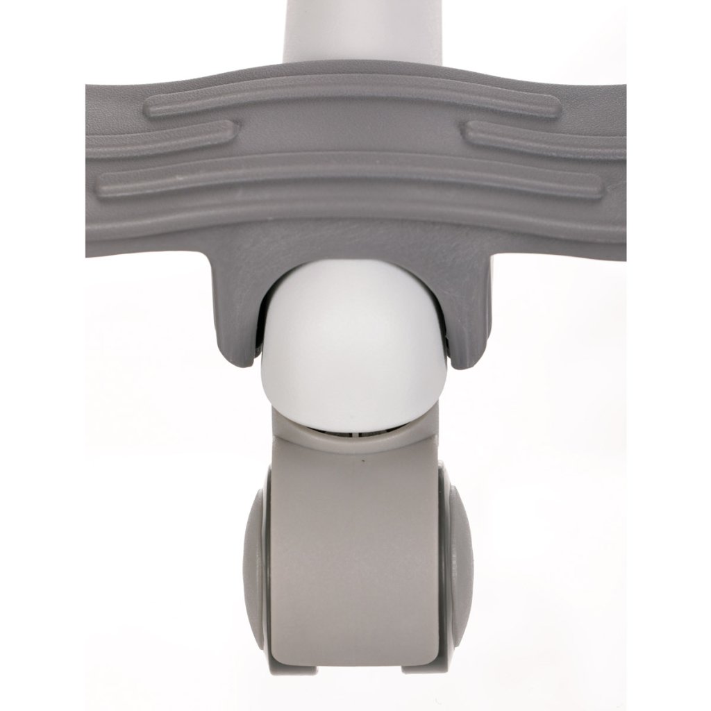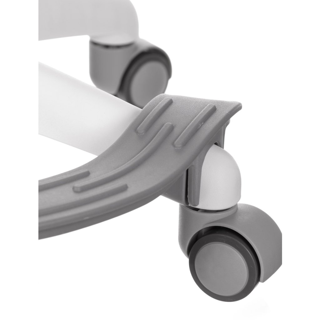 Dětská židle v příjemných pastelových barvách spolu s bílou kostrou nabízí jednoduchý a elegantní design. Židle má pevný opěrák potažený prodyšným síťovaným materiálem. Sedák ve stejném potahu poskytuje dostatek pohodlí díky svému vyměkčení. Pro pocit pohodlí slouží pevné područky, které jsou na své vrchní části opatřeny lesklým plastovým povrchem v barvě potahového materiálu. Důležitá je také integrovaná opěra nohou, která přispívá k pohodlnému sezení. Židle je opatřena speciálními funkčními kolečky, která se při zatížení automaticky zablokují, což zabraňuje nechtěným pohybům židle.