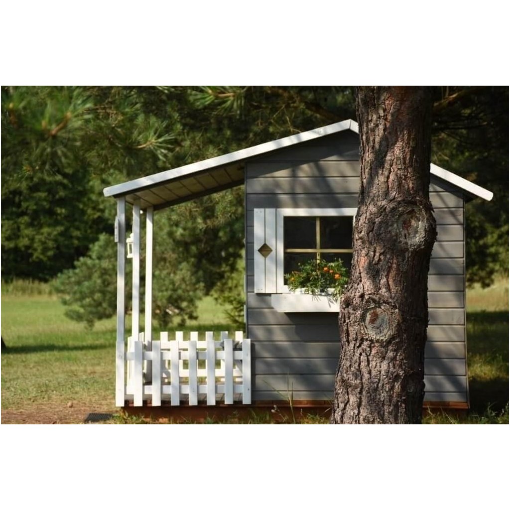 Domeček má modulární konstrukci a většinu prvků, jako stěny, střecha, dveře, okna, podlahy, zábradlí jsou rychle sestaveny a připraveny pro malování. Instalace domečku je díky připraveným dílům snadná a rychlá.