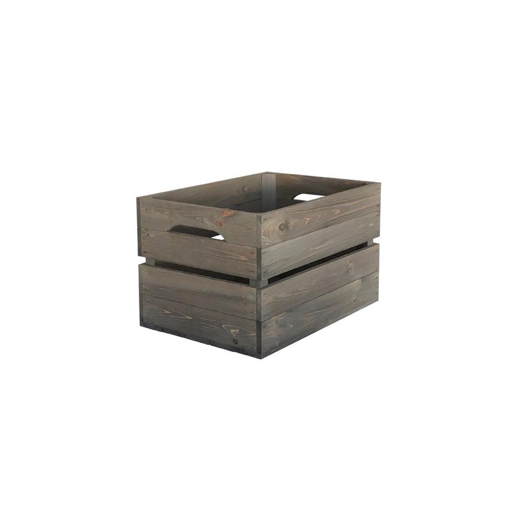 60;40;34; Dřevěná bedna z opalované borovice s pevnou konstrukcí k uložení těžsích předmětů. Nosnost: 24 kg.