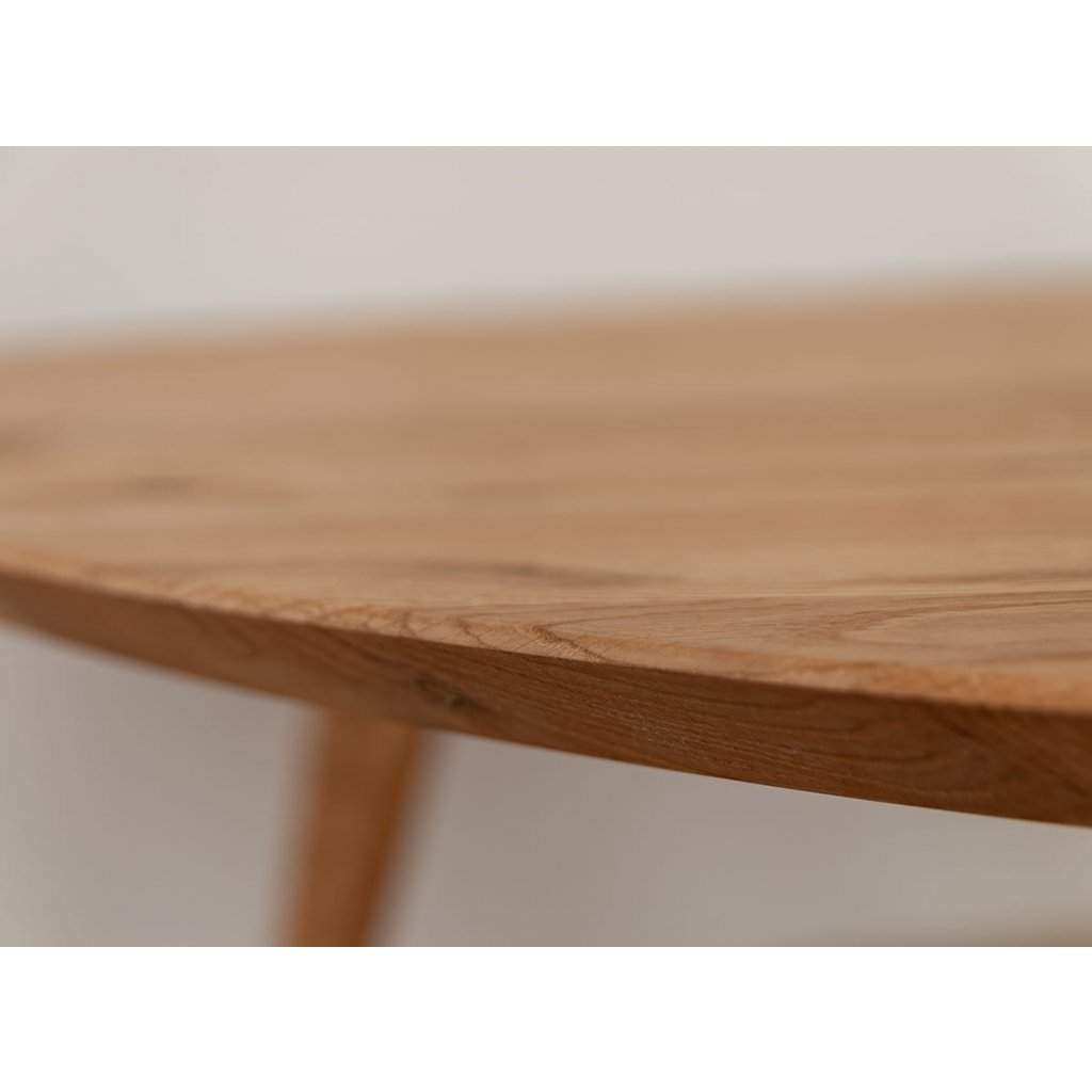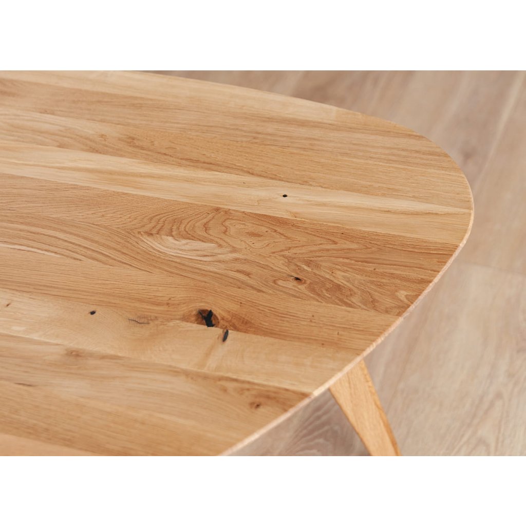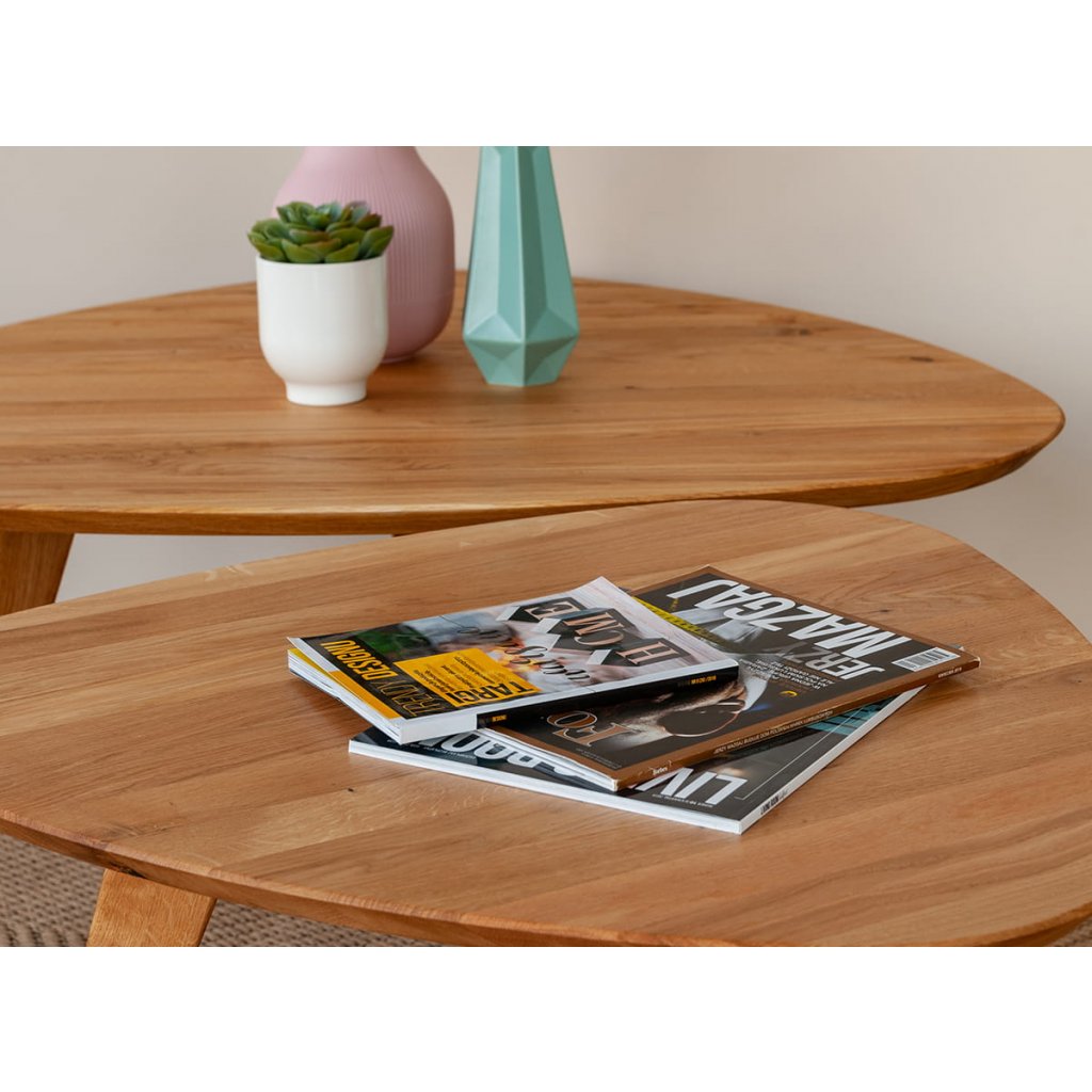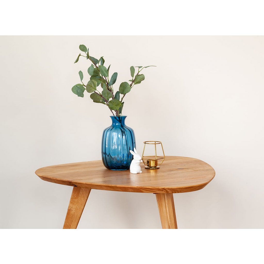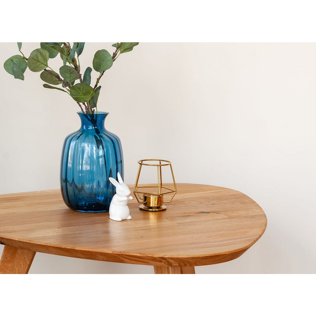 Konferenční stolek je celý vyroben z dubového dřeva, na horní straně jsou vidět přírodní dřevěné kroužky, které dodávají kouzlo a dělají každý kus nábytku jedinečným. Deska stolu a nohy jsou originálně frézované, což mu dodává lehkost při zachování stability konstrukce. Při výběru dřevěného nábytku do našeho domova volíme nadčasovou krásu.