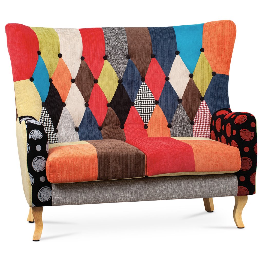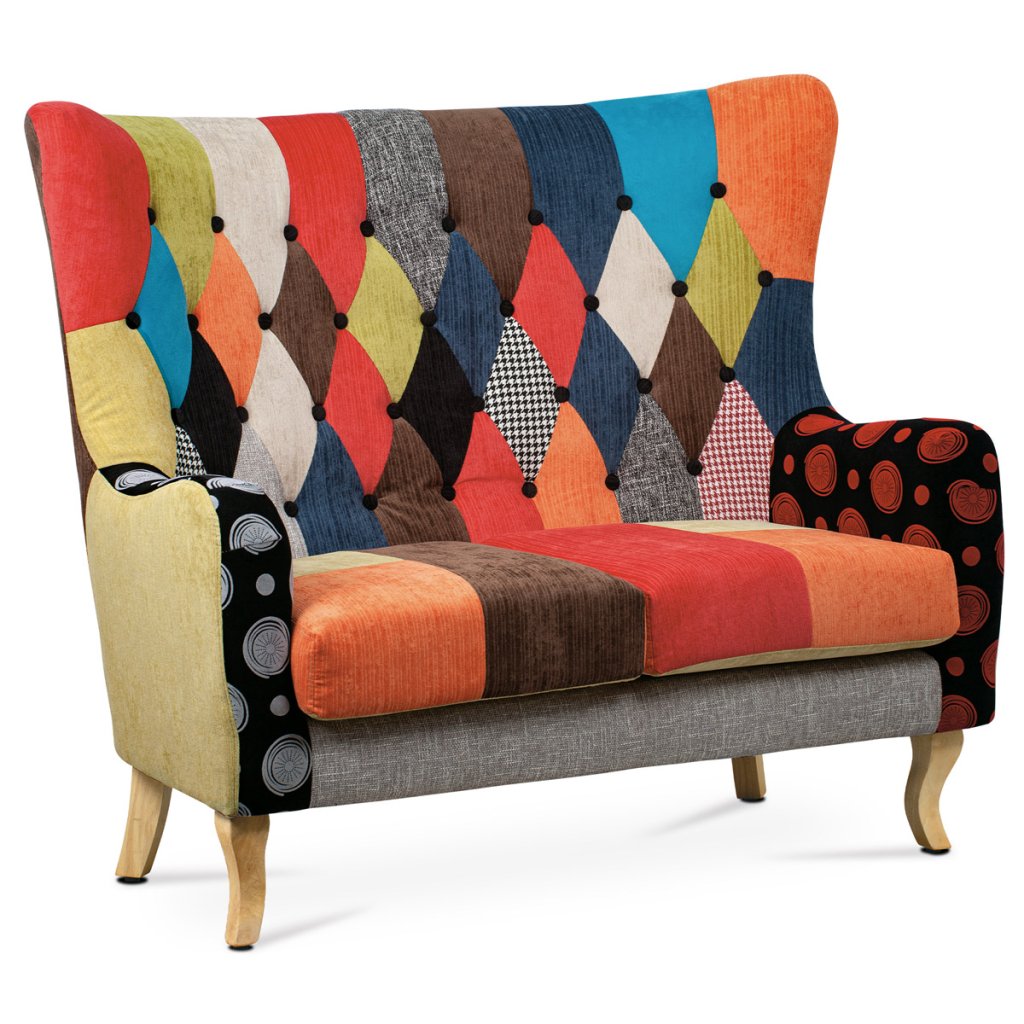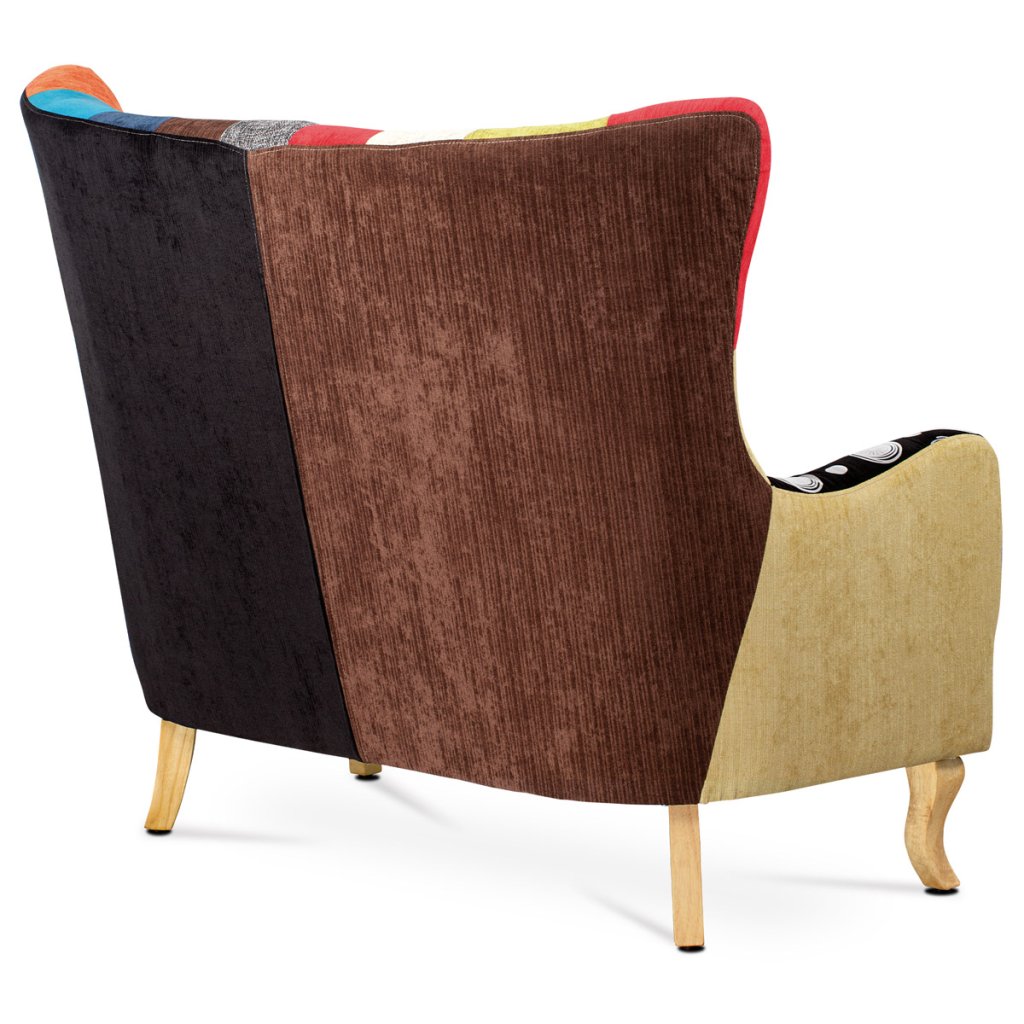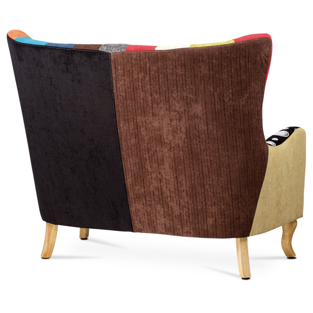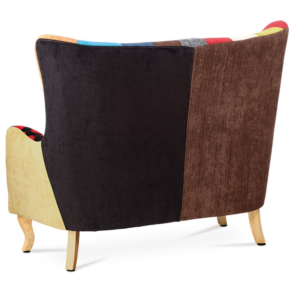 Dvojsedačka, potah látka patchwork, dřevěné nohy, masiv kaučukovník AK-100 PW2