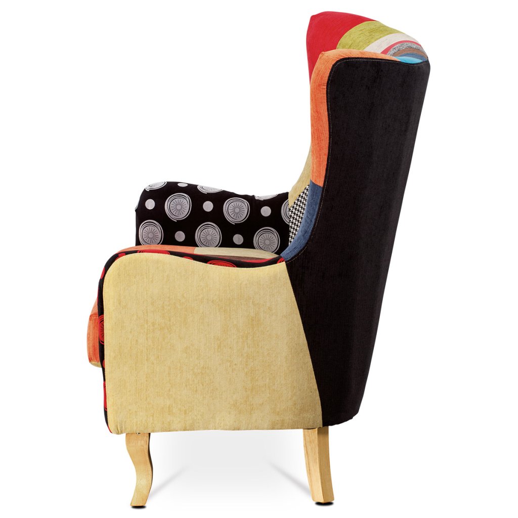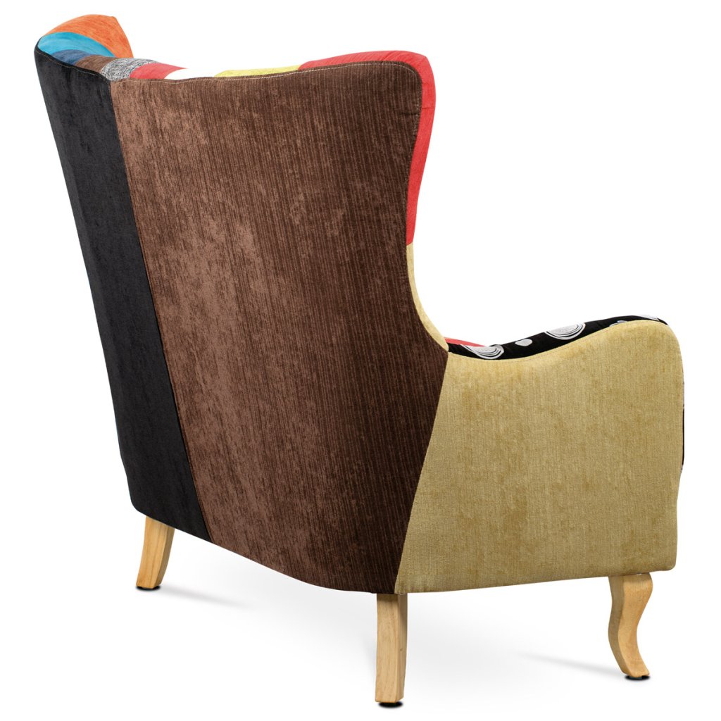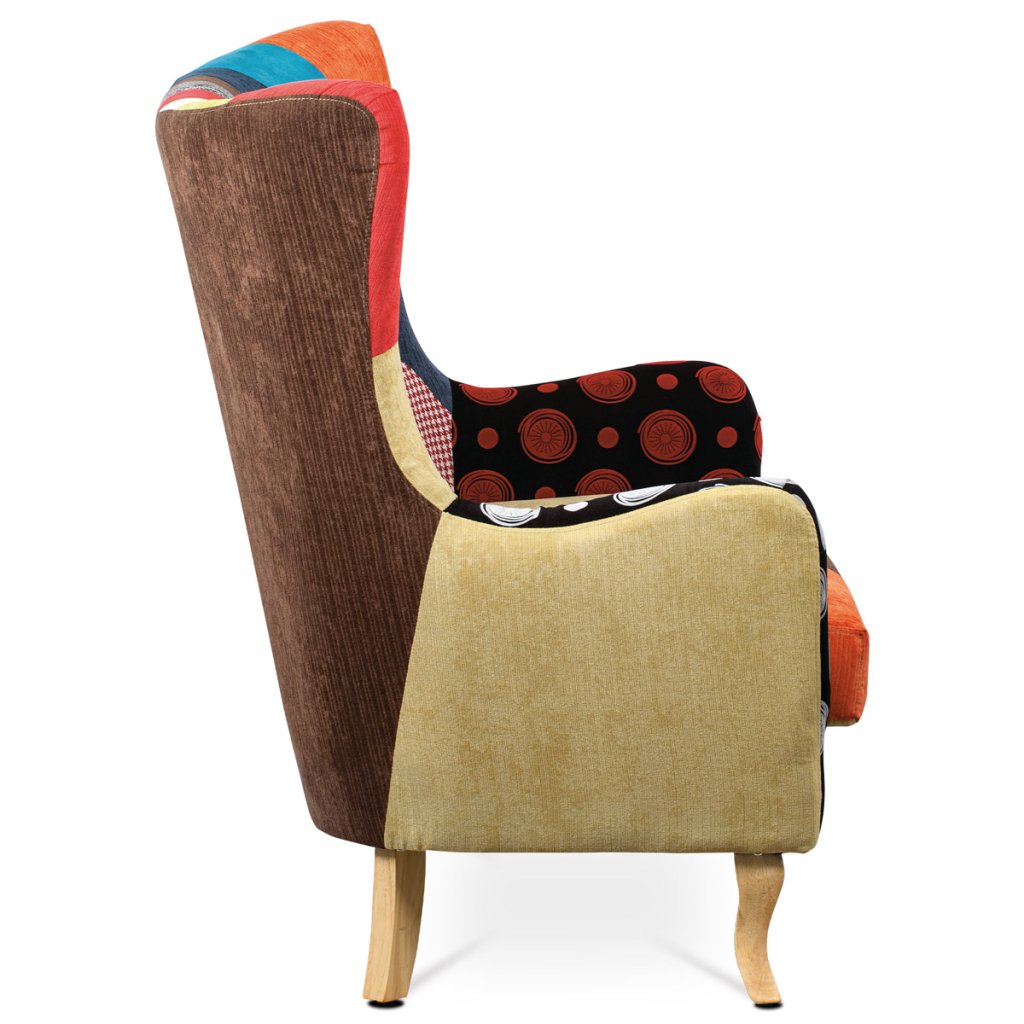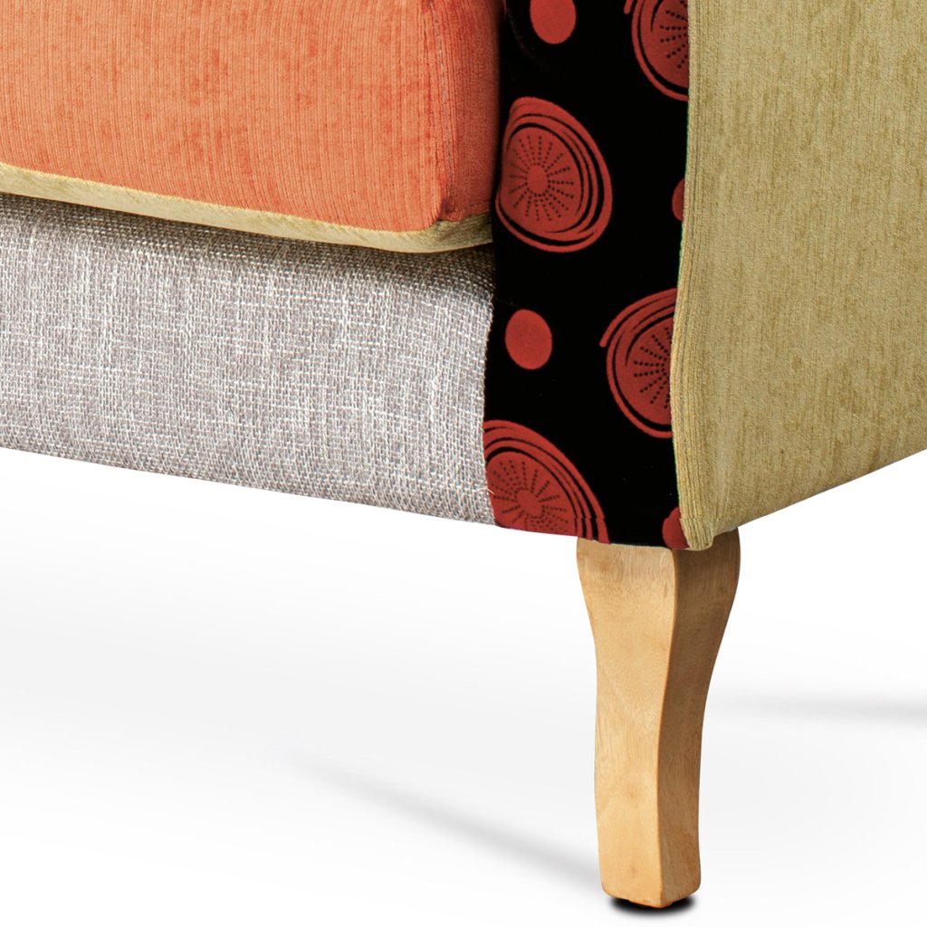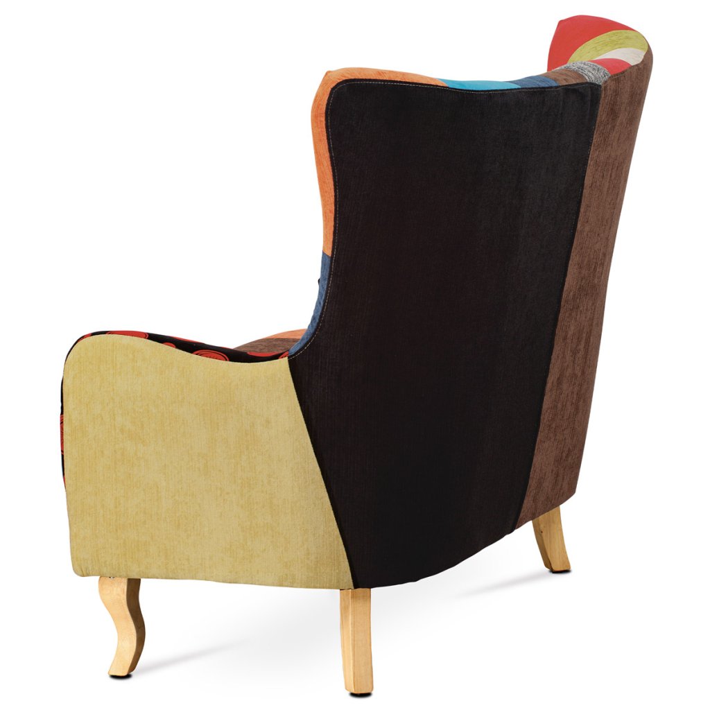 Dvojsedačka, potah látka patchwork, dřevěné nohy, masiv kaučukovník AK-100 PW2