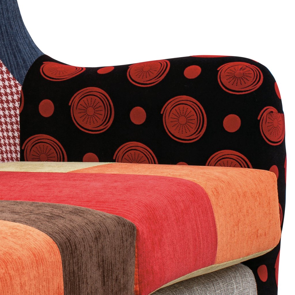 Stylová dvojsedačka ve skandinávském stylu. Je čalouněná příjemnou patchwork látkou ve spektru veselých barev a bude skvělým a nepřehlédnutelným doplňkem Vaší domácnosti. A nejen to, bude i senzačním společníkem při lenošení s dobrou knihou či sklenkou. Vaše pohodlí je pro nás prioritou. Proto kromě standardního polstrování je sedák extra vyztužen dvěma vrstvami studené a polyuretanové pěny, která drží tvar a pružnost sedáku. Na komfortu přidají i pružiny typu faliste, které celkově podporují funkčnost pružné pěny. Opěrák sedačky zdobí výrazné čalounické vtahy, které jsou zakončeny knoflíky potažené černou látkou. Nohy jsou z masivního kaučukovníku v přírodním odstínu a kostra je vyrobena z masivního dřeva. Světlá výška je 19 cm, šířka područek 12 cm a výška 62 cm. Nosnost sedačky je až 170 kg.