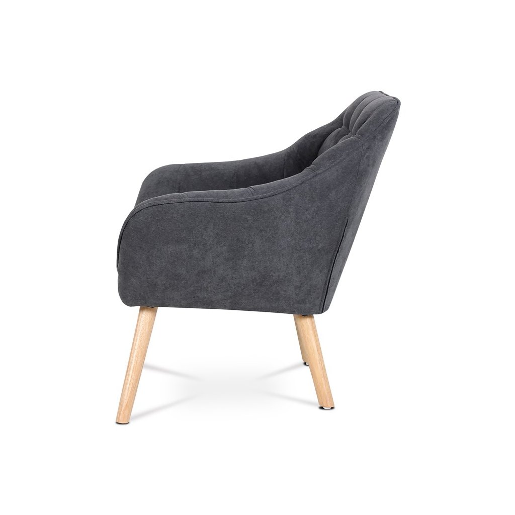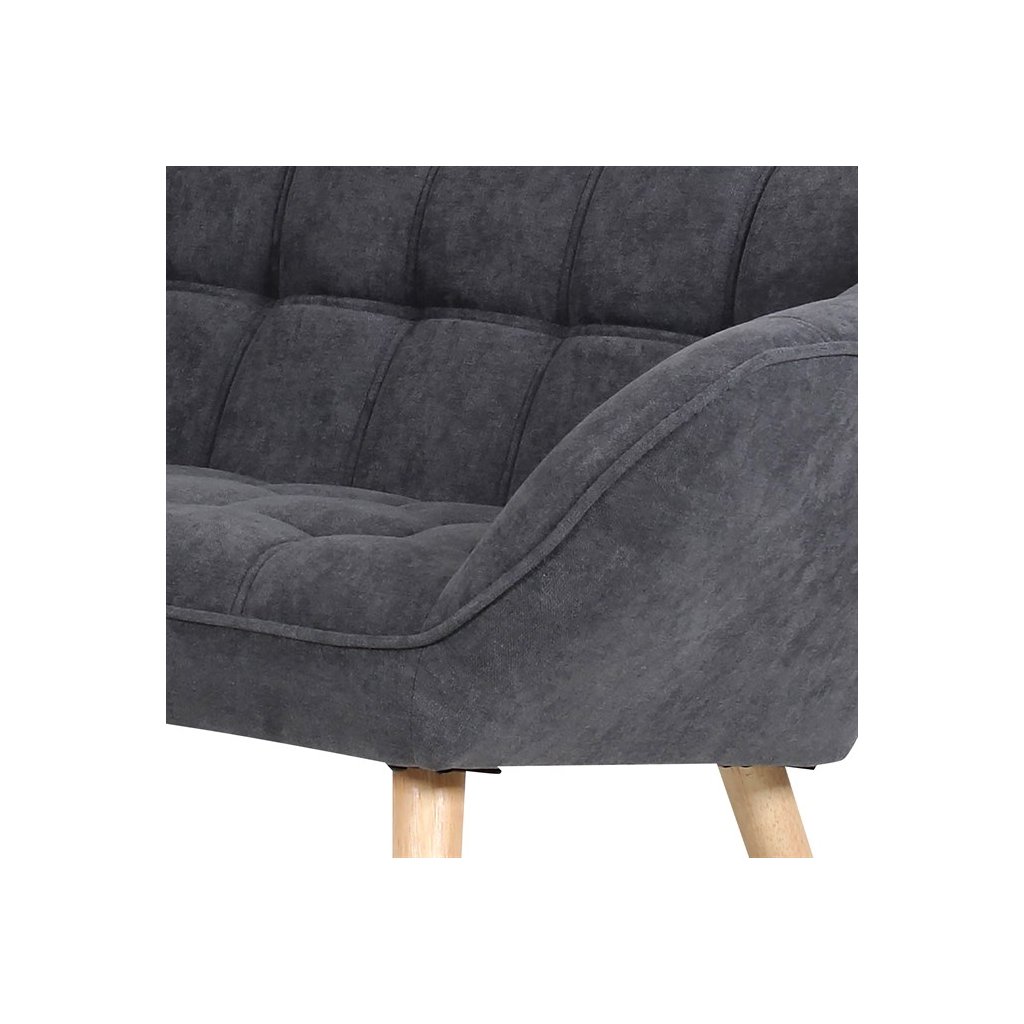 Potah je z látky v tmavě šedém odstínu, kostra z masivního dřeva, vyplněné je kvalitní PU pěnou. Sedáky jsou ještě zpevněny elastickými popruhy pro zvýšení komfortu pohodlí. Štíhlé kónické nohy jsou z masivního kaučukovníku v přírodním odstínu a lakované transparentním lakem. Poškození podlahových krytin je eliminováno plastovými kluzáky, u zadních nohou jsou rektifikovatelné (výškově nastavitelné).