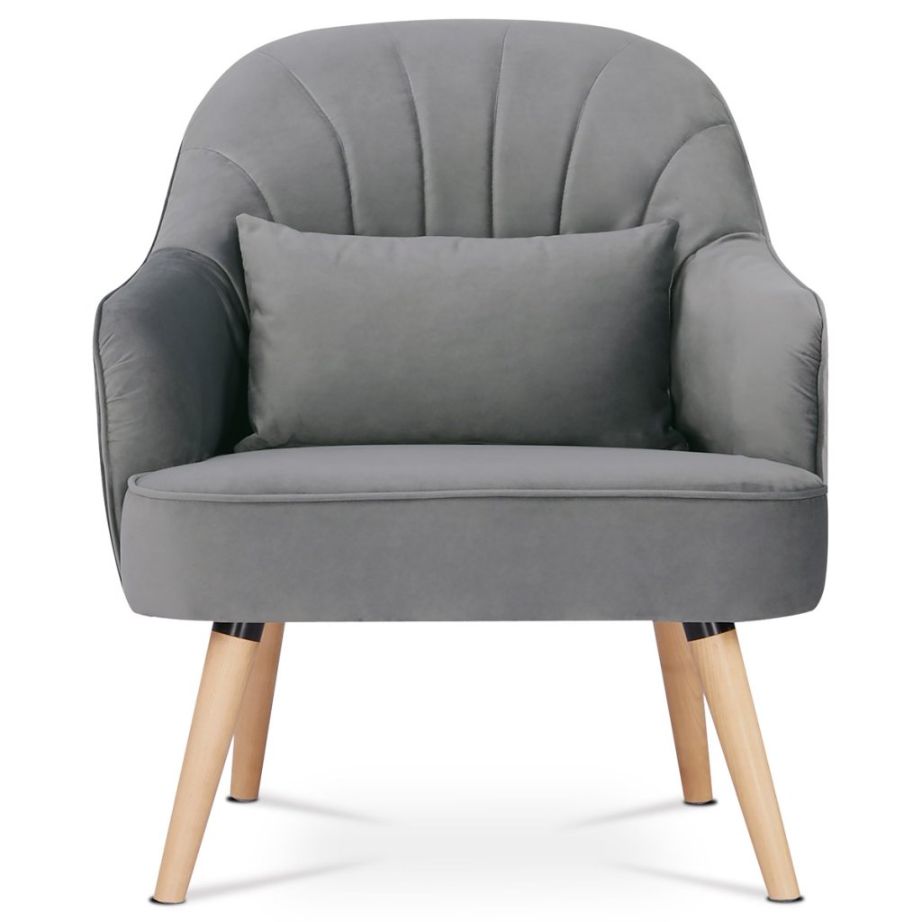 Francouzské křeslo s polštářem, potah stříbrná sametová látka, nohy masiv buk ASB-018 SIL