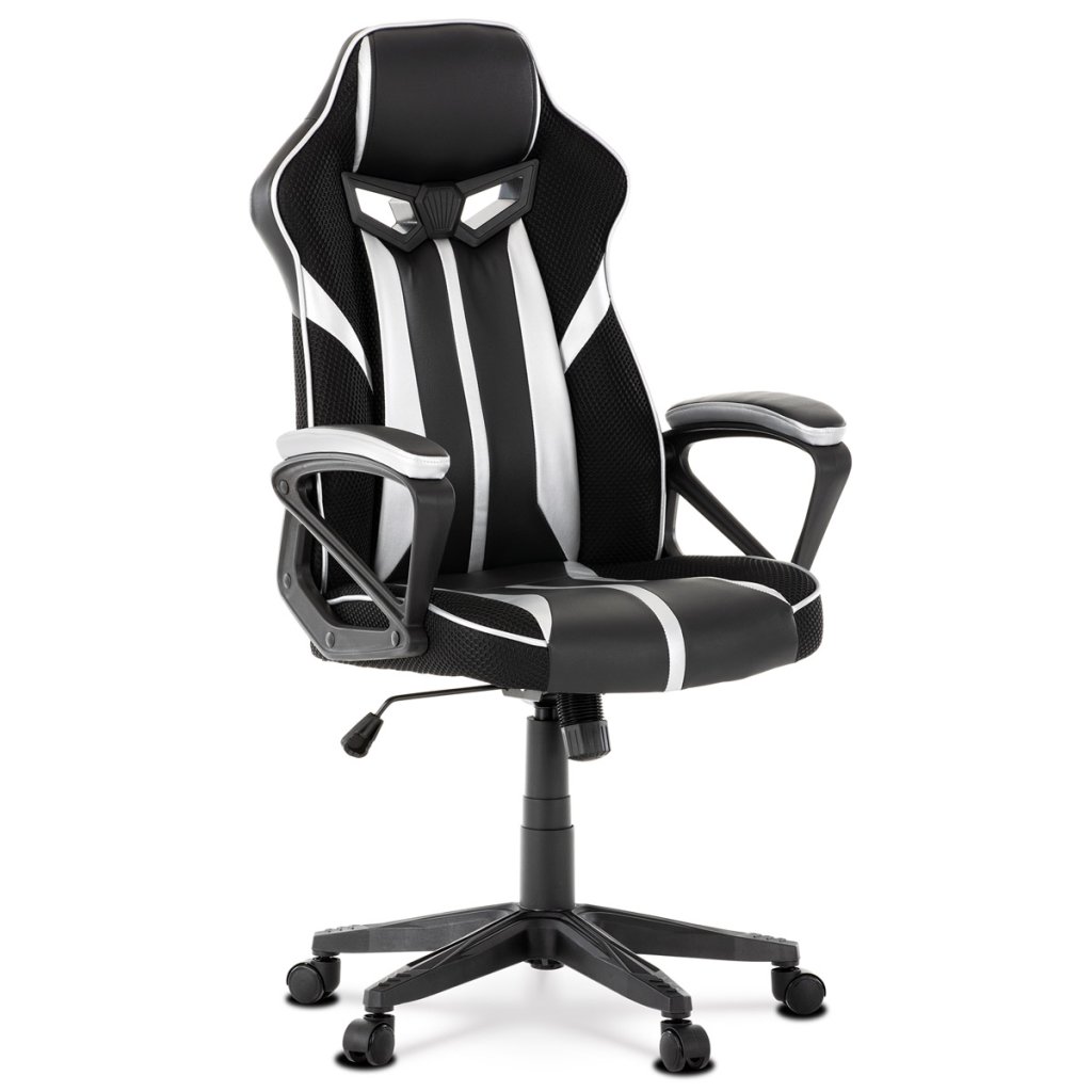 Herní křeslo potah černá stříbrná ekokůže a černá látka MESH AKZ184ST