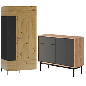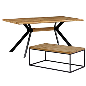 Pro industriální nábytek jsou typické kontrasty – tmavé barvy, kovové rámy a přírodní dřevo vytvářejí nezaměnitelný vzhled. Dřevěné desky s přiznanou strukturou působí hřejivě a autenticky, zatímco černý kov dodává sílu a moderní eleganci. Oblíbené jsou konferenční stolky v kombinaci kovu a dřeva, praktické šatní skříně s industriálním nádechem nebo barové židle, které dodají kuchyni loftový charakter. Do obývacího pokoje doporučujeme také TV stolky, které propojují funkčnost a industriální design. Kombinace surových materiálů a tlumených barev tvoří základ industriální estetiky.