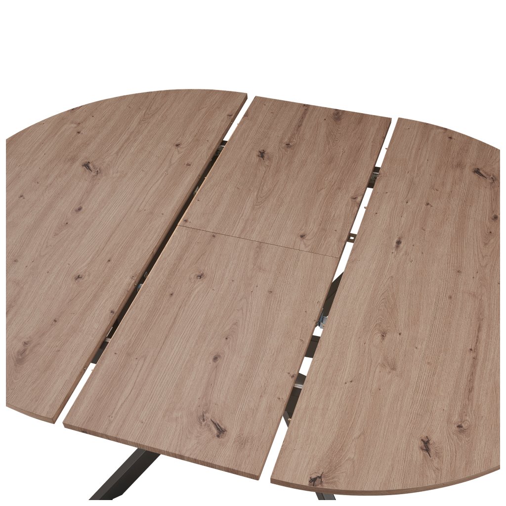 120;120;75; Materiál: MDF/kov Materiál deska stolu: MDF Barva: dub artisan Konstrukce nohy: kov Barva: černá Rozměry (ŠxHxV): 120x120-160x75 cm Tloušťka materiálu vrchní...
