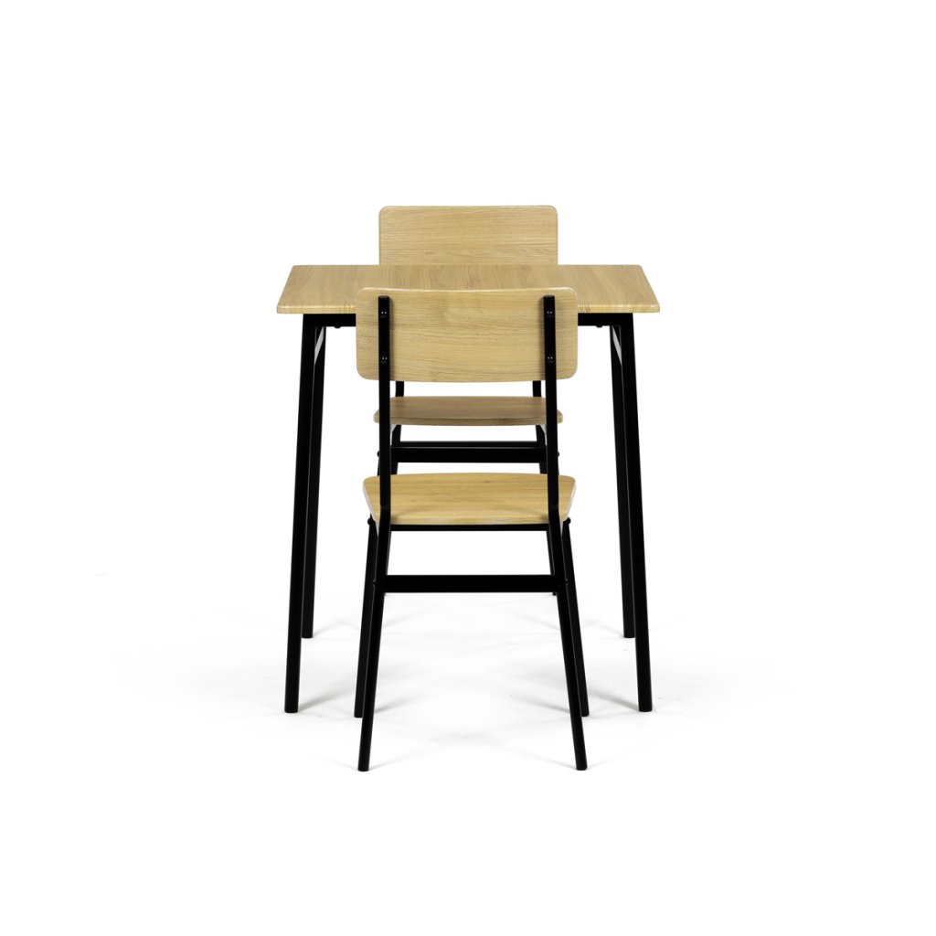 Set jídelní (1+2), MDF, dekor divoký dub, černý kov AJSA100D. Tento jídelní set značky je ideální volbou pro menší prostory. Set obsahuje čtvercový stůl a dvě židle, které se svým industriálním designem...