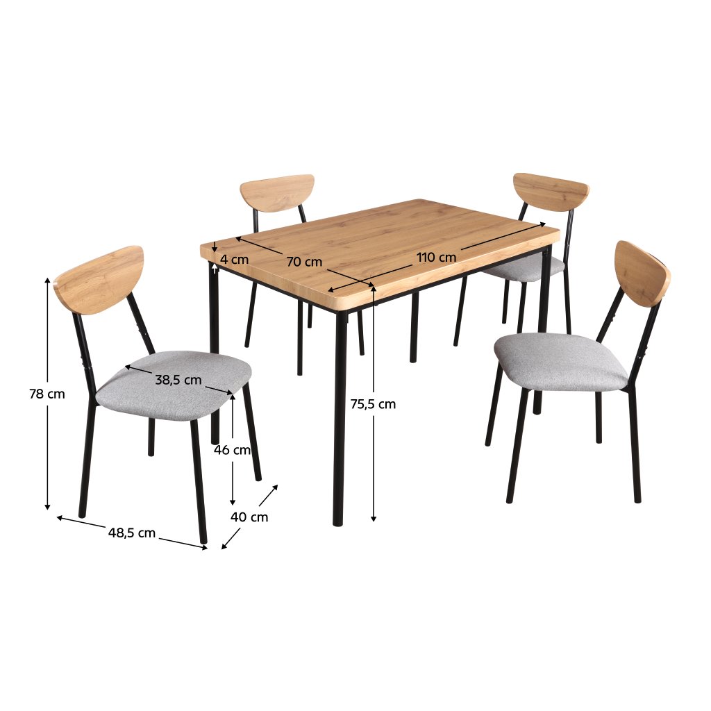 Jídelní set 1+4 dub světlý šedá černá TJSA109D