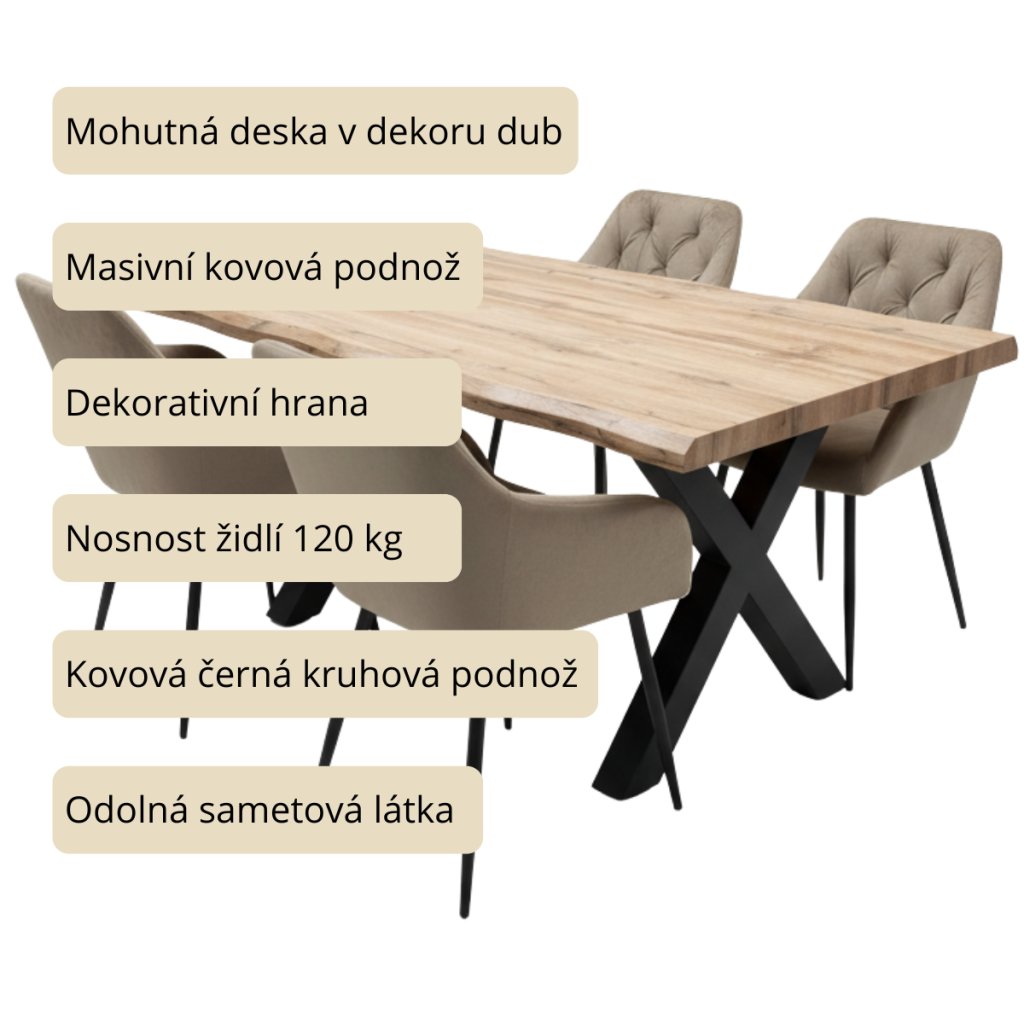 Jídelní set 4+1 160x90 cm dub, béžová VJS136-4BE ZA AKČNÍ CENU