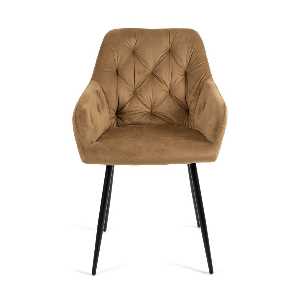 Elegantní židle s područkami a moderním designem. Pohodlné čalounění v béžovém sametu s dekorativním prošíváním. Stabilní kovové nohy v černém provedení. Skvěle doplní jídelnu, pracovnu či obývací pokoj. Spojuje komfort, styl a luxusní vzhled.