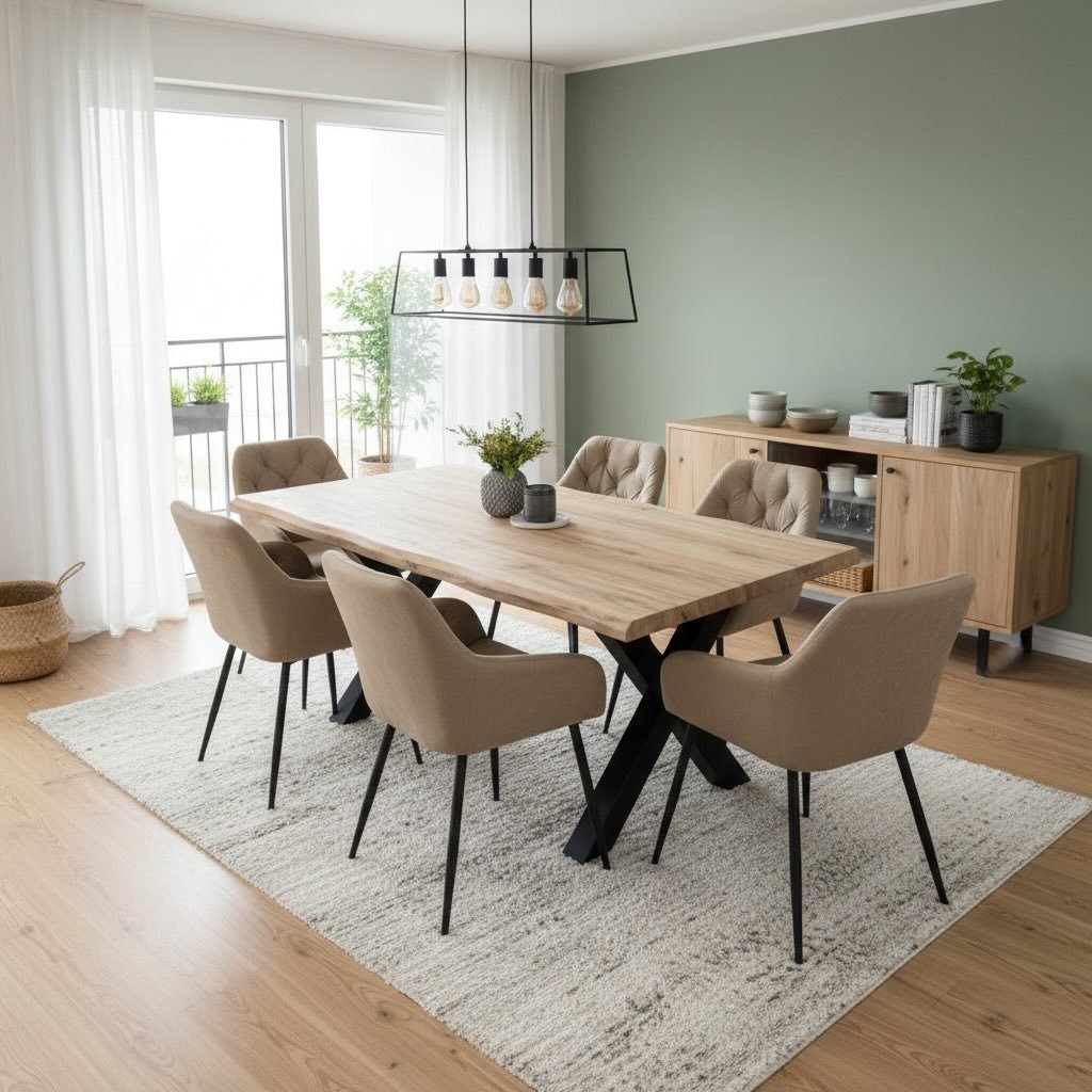 Jídelní stůl VJS100D-160 spojuje dekor dubu s kovovou konstrukcí do X v černém matu. Velkorysý rozměr 160×90×75,5 cm pohodlně pojme 6 osob a poskytuje dostatek prostoru pro každodenní stolování. Povrchová úprava z MDF desky imituje masivní dřevo a je snadno udržovatelná. Ideální volba do moderní jídelny, loftu nebo minimalistického interiéru. Podívejte se na naši nabídku jídelních stolů.
