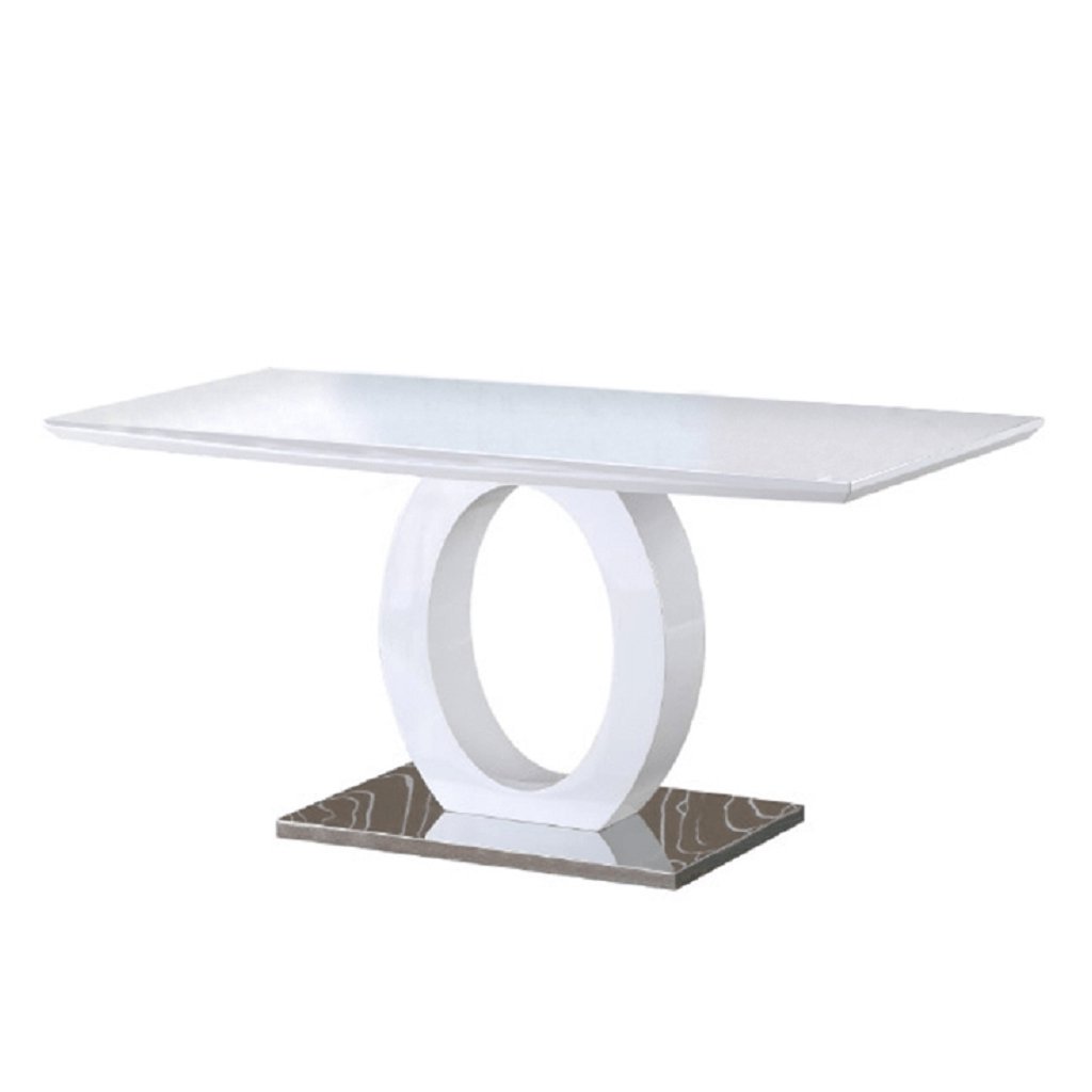 Jídelní stůl bílý obdelník vysoký lesk noha ve tvaru elipsy ocelová podnož TK3209