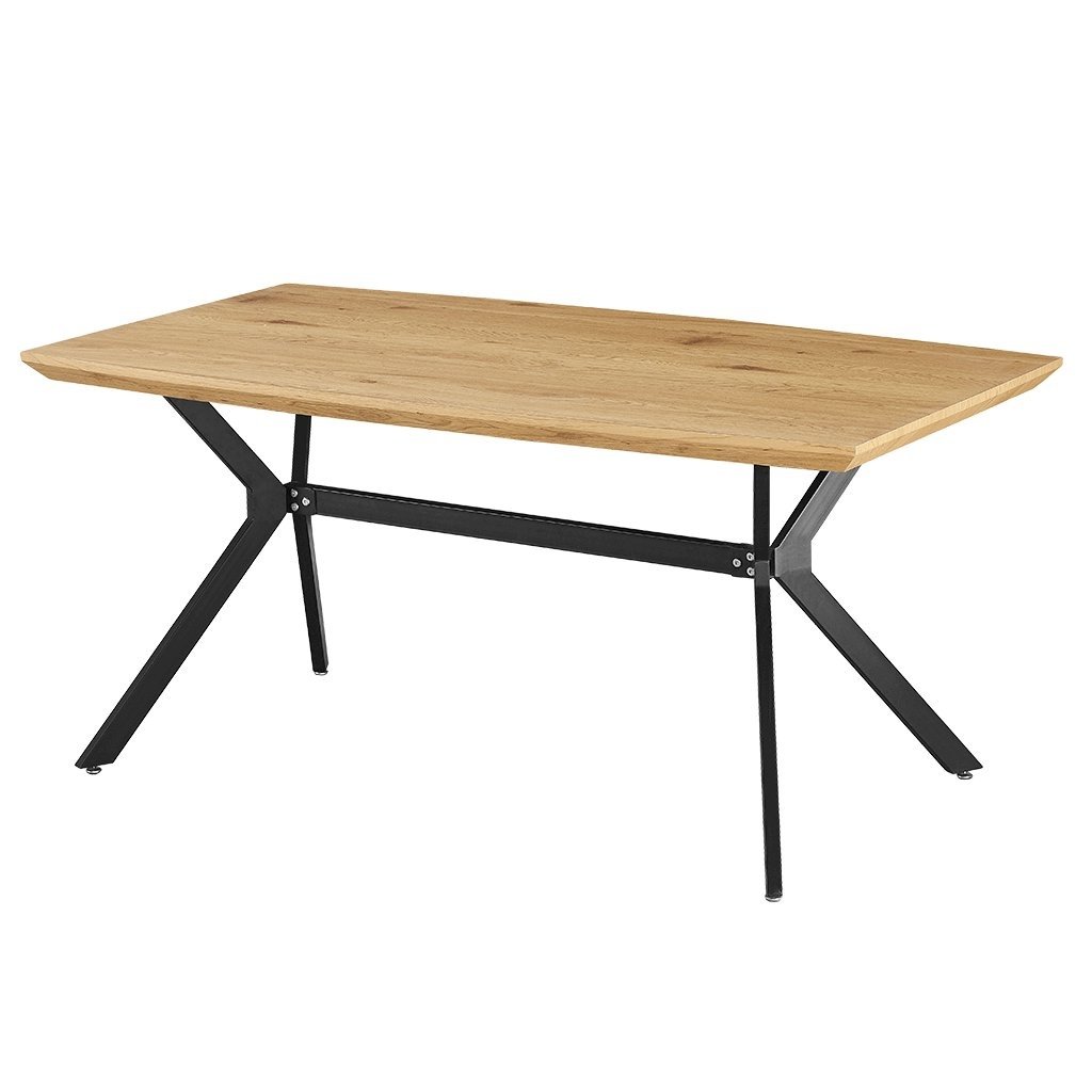 180;90;76;Jídelní stůl, 180x90x76 cm, MDF deska s dýhou odstín dub, kovové nohy, černý lak AJS131D