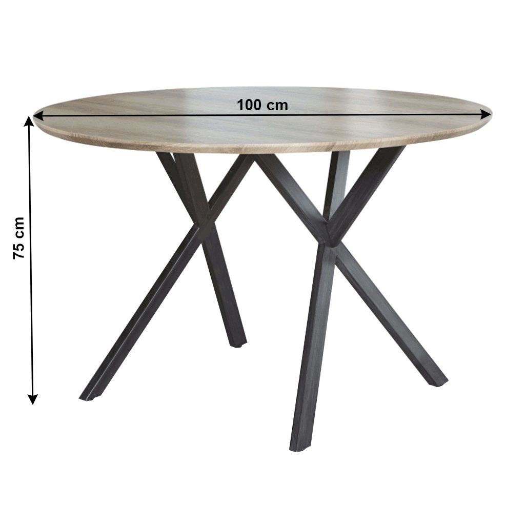 Jídelní stůl, dub šedý/černá, průměr 100 cm, AKTON