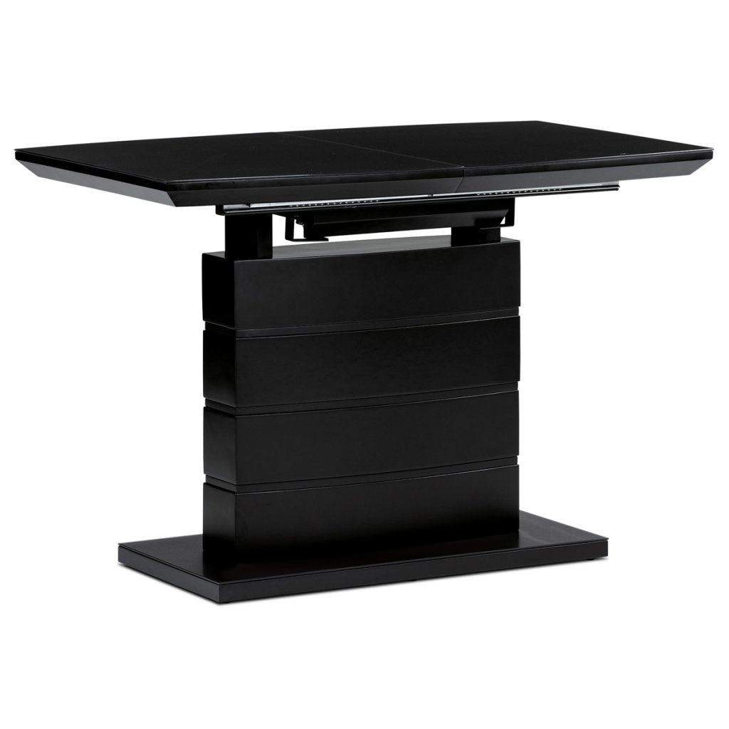 Jídelní stůl 110+40x70 cm, černá 4 mm skleněná deska AJS125C