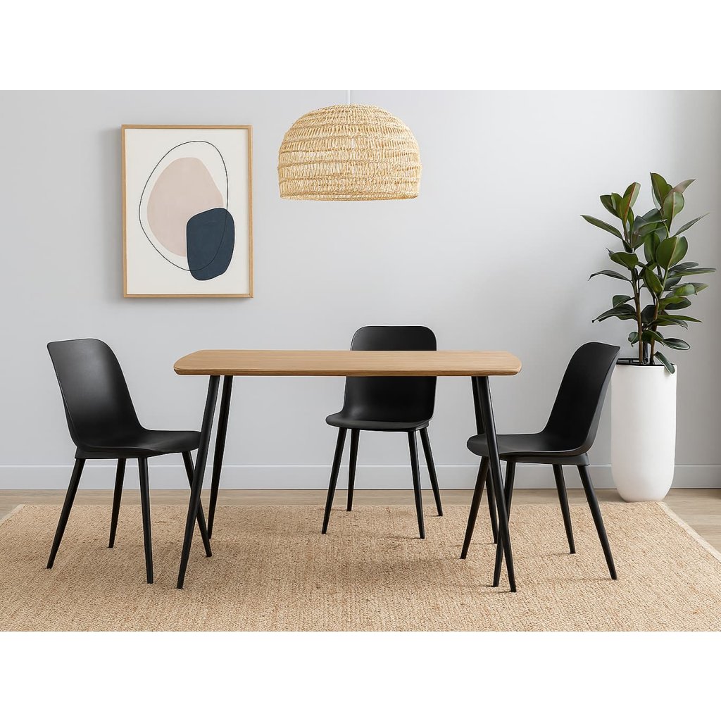 Dodejte svému interiéru lehkost, eleganci a styl s tímto moderním jídelním stolem. Kombinuje přírodní vzhled dřeva s černými kovovými nohami, které mu dodávají nadčasový industriální charakter. Díky čistým liniím a univerzálnímu designu se hodí do rů...