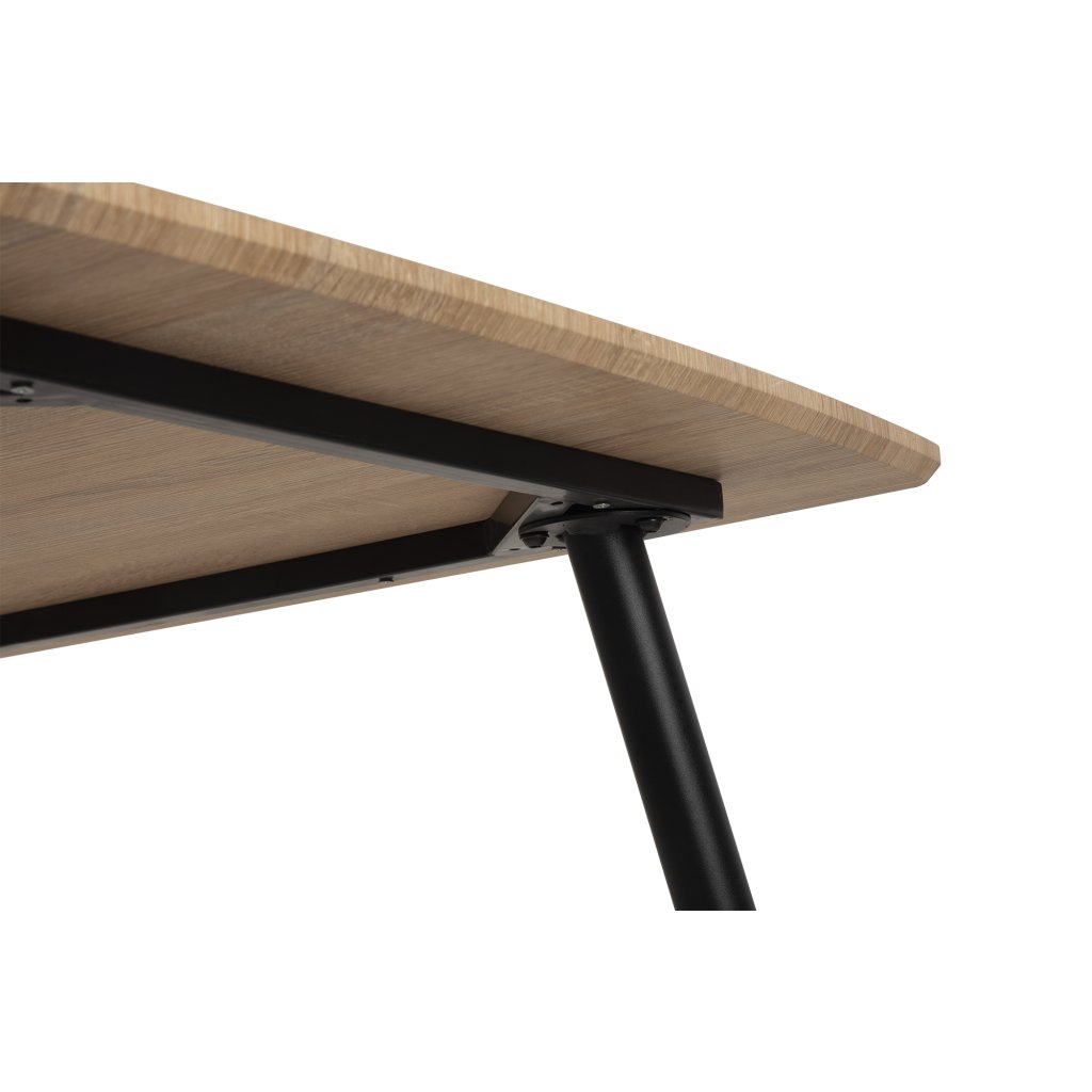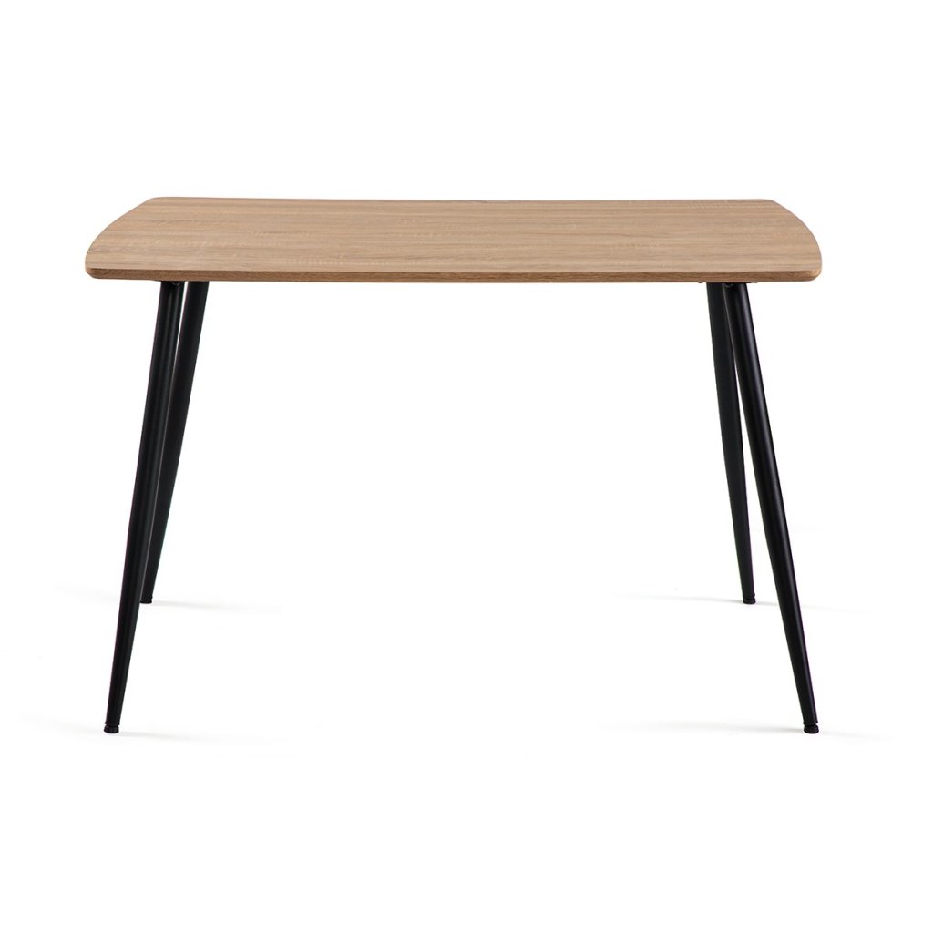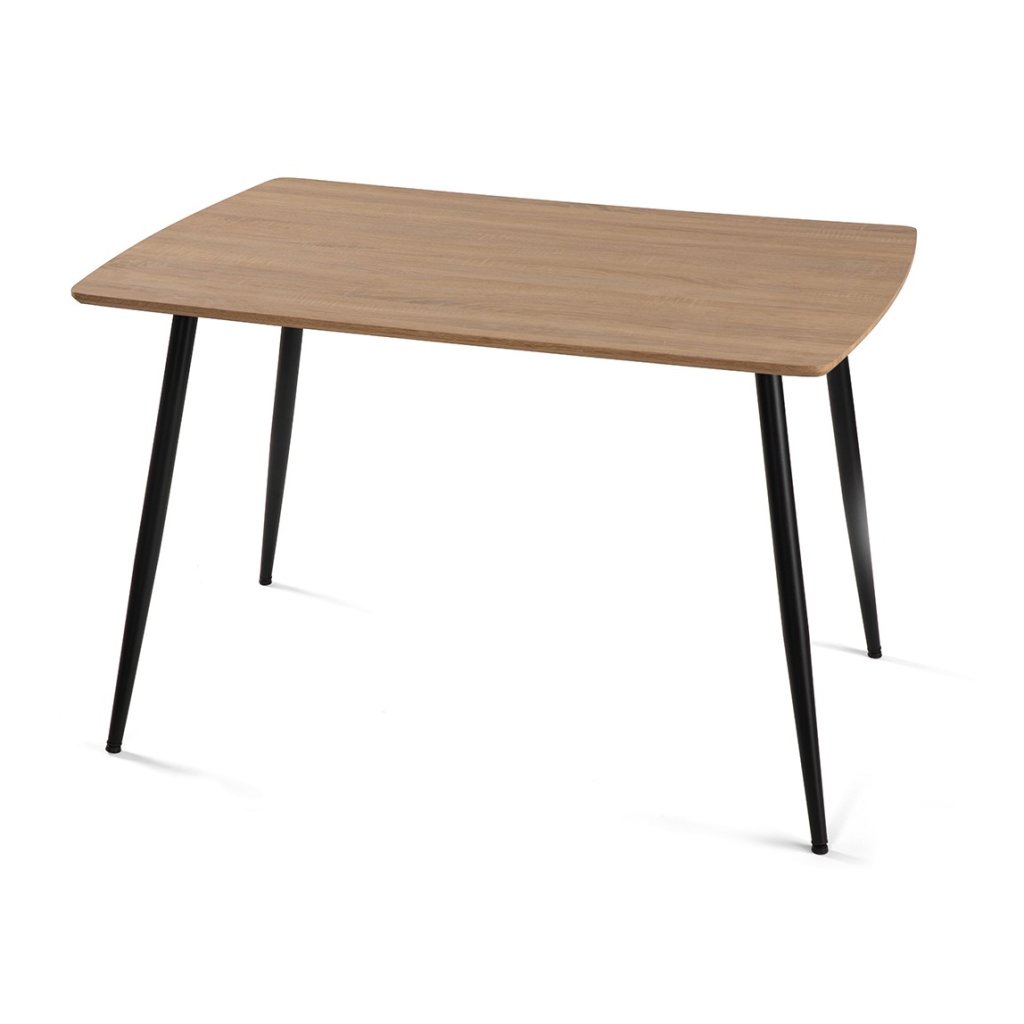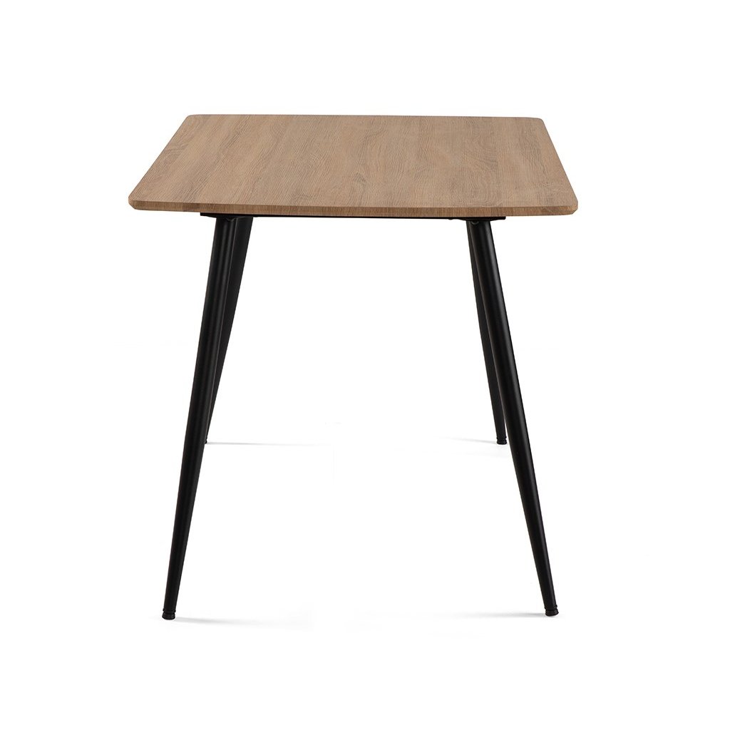 Dodejte svému interiéru lehkost, eleganci a styl s tímto moderním jídelním stolem. Kombinuje přírodní vzhled dřeva s černými kovovými nohami, které mu dodávají nadčasový industriální charakter. Díky čistým liniím a univerzálnímu designu se hodí do různých typů interiérů.