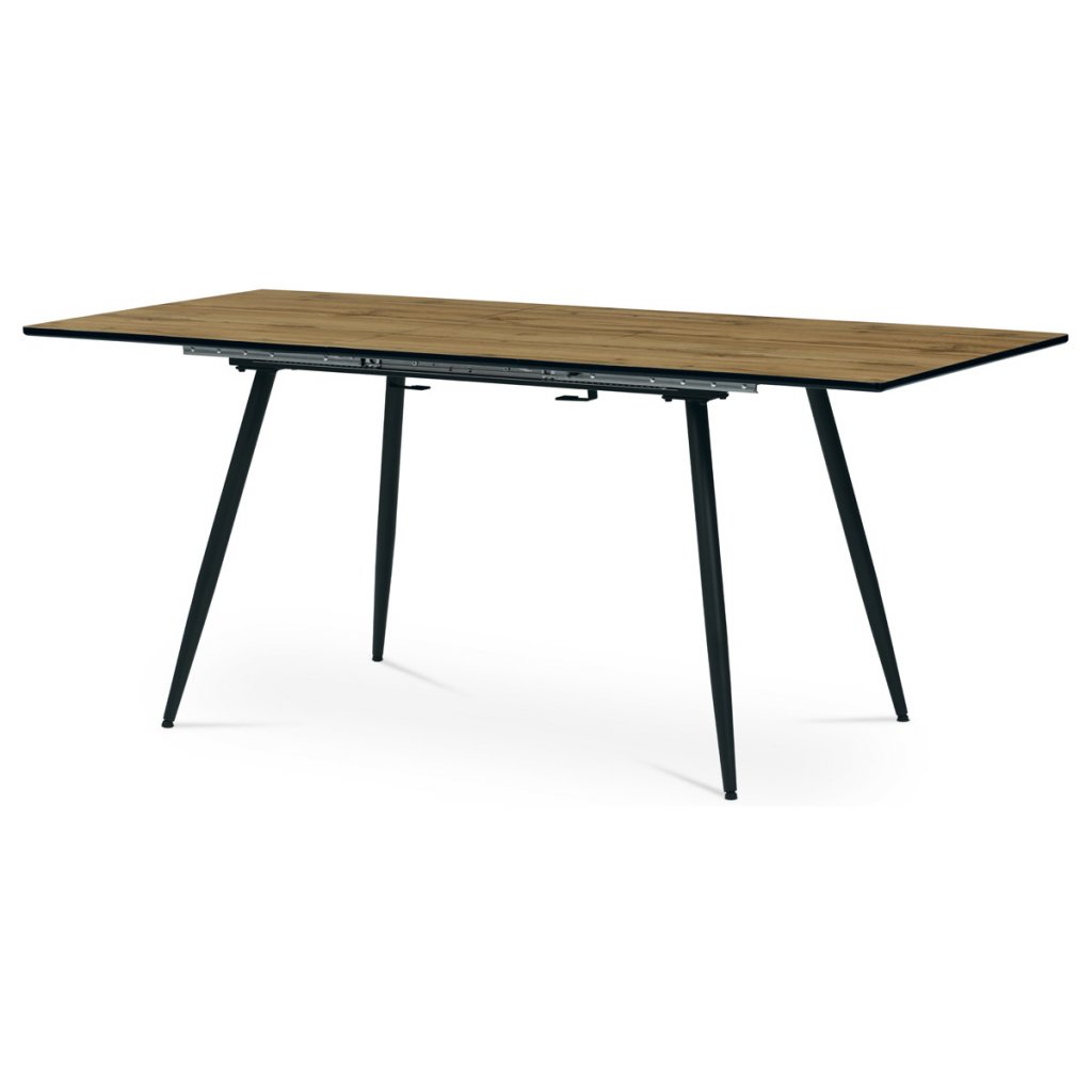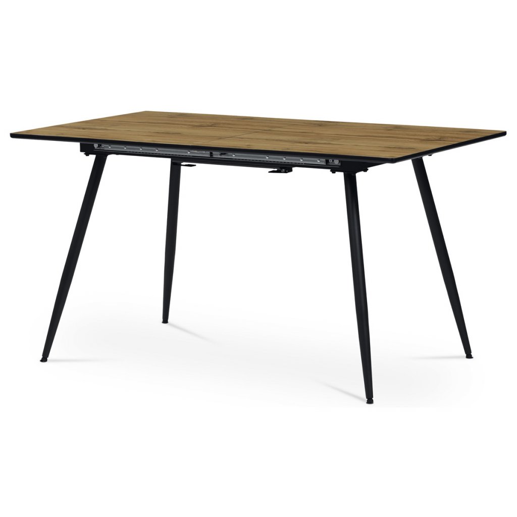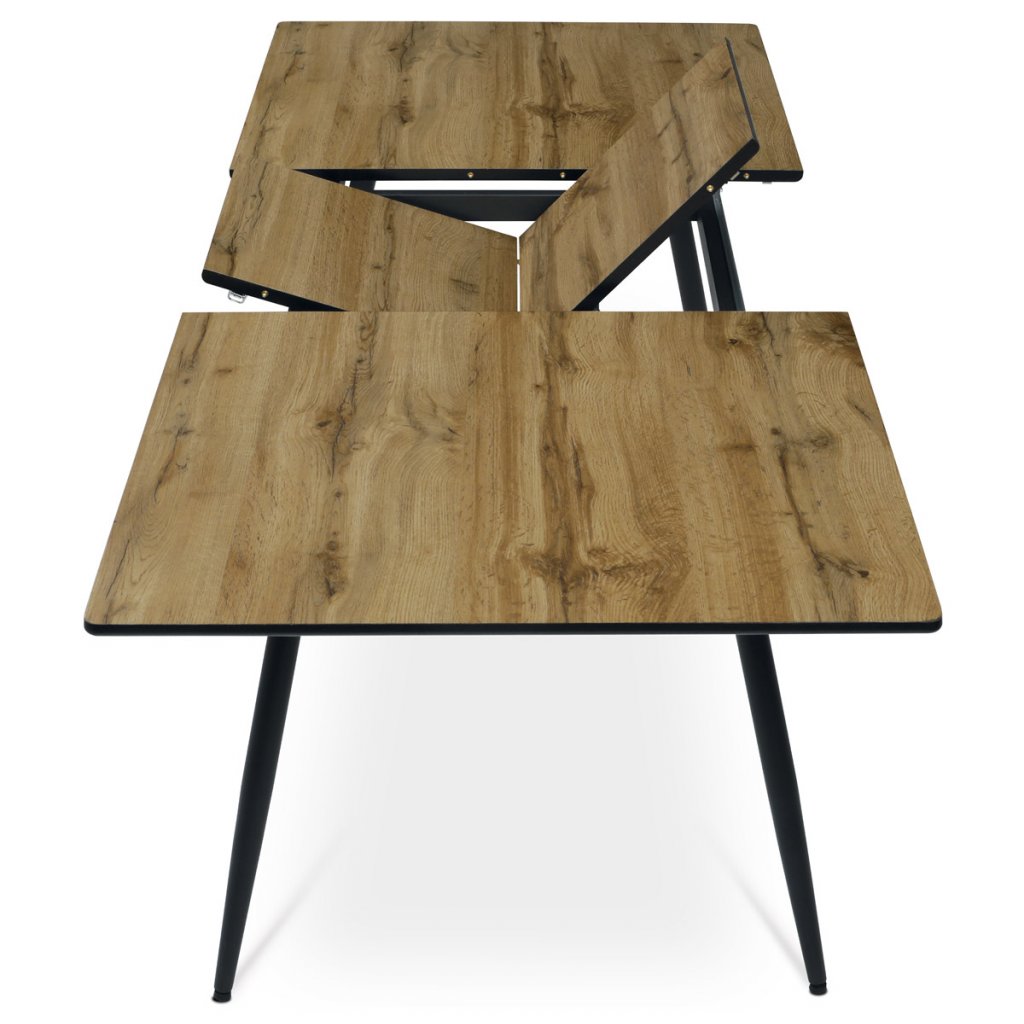 Jídelní stůl, 140+40x80x76 cm, MDF deska, dýha divoký dub, kov, černý lak AJS139D