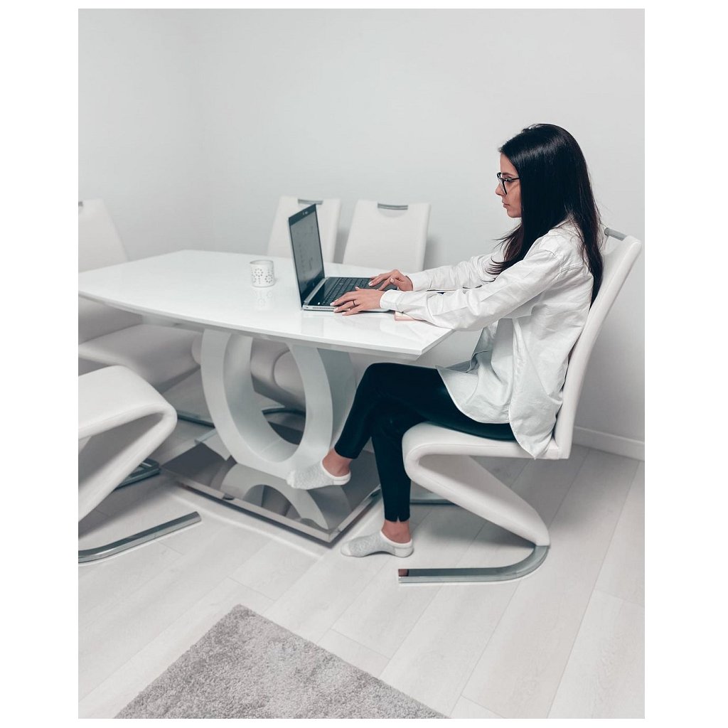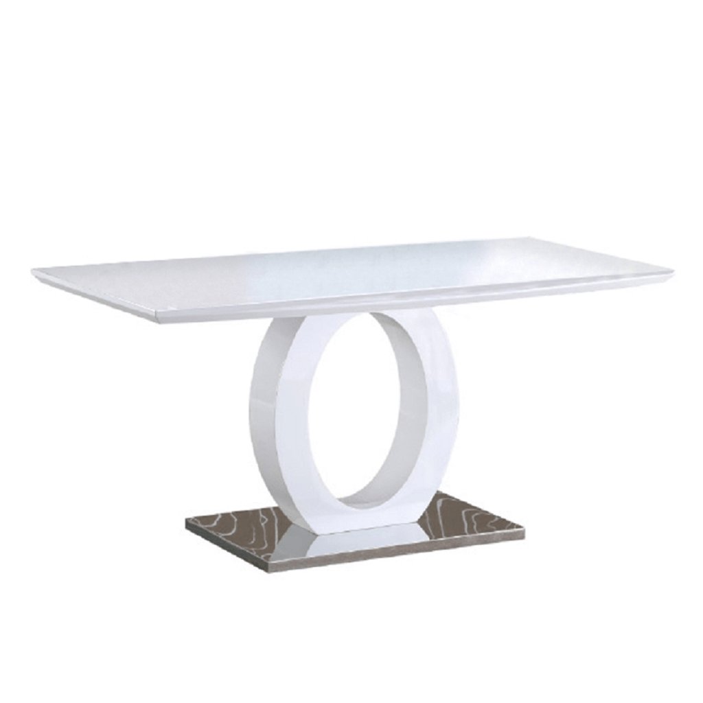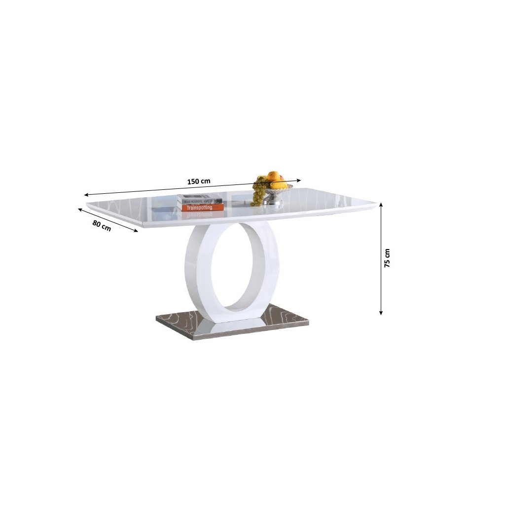Jídelní stůl bílý obdelník vysoký lesk noha ve tvaru elipsy ocelová podnož TK3209