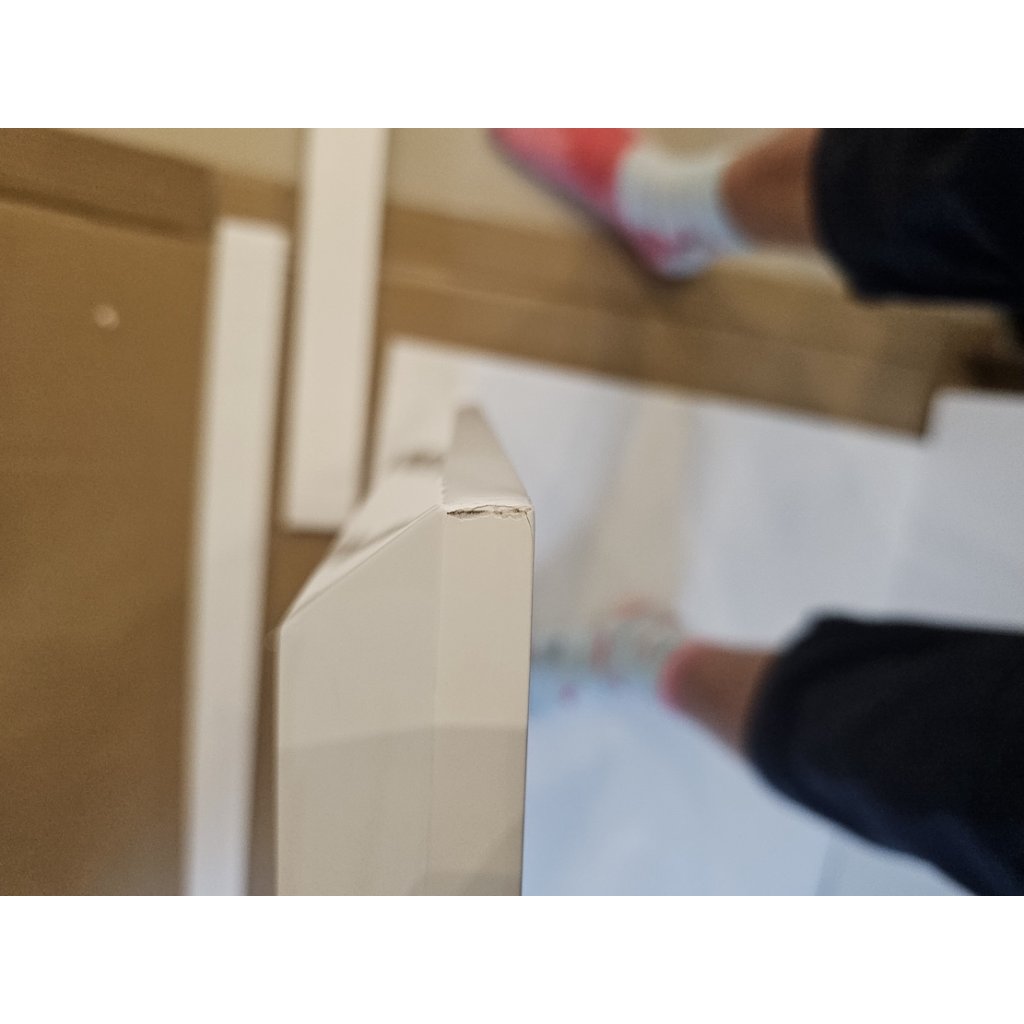 Jedná se o II. jakost. Mírně poškozen roh stolové desky a drobný kaz na chromové podnoži.