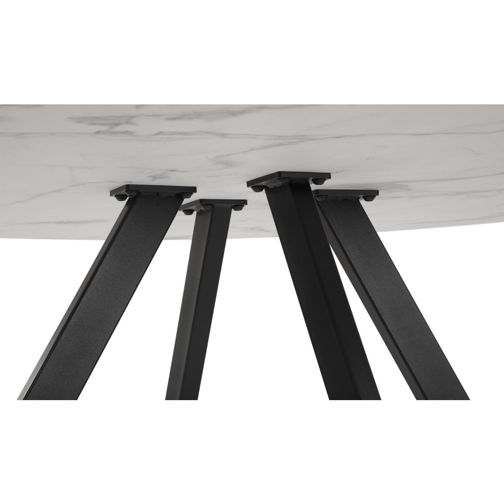 Kulatý jídelní stůl s moderním minimalistickým designem. Stolová deska v bílé barvě s elegantním mramorovým dekorem. Stabilní kovová podnož v černém provedení zajišťuje pevnost a stabilitu. Ideální do jídelny, kuchyně či stylového obývacího prostoru....