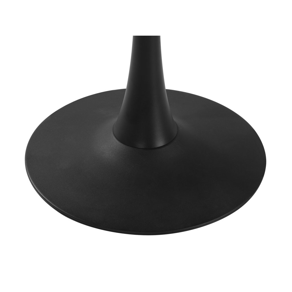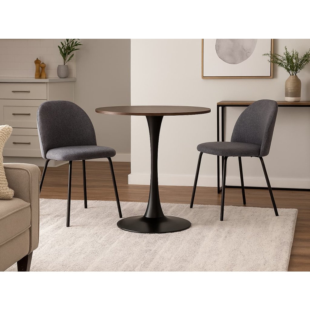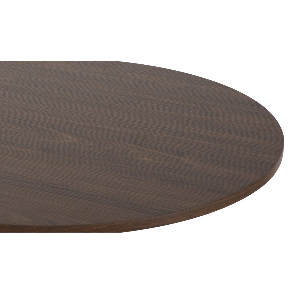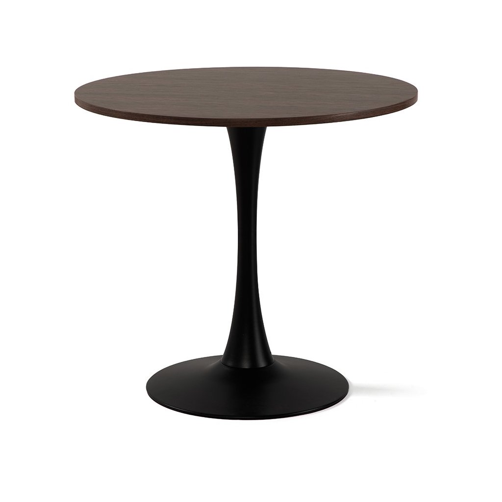 Stůl zaujme svým čistým tvarem a decentní elegancí. Kulatá MDF deska v dekoru tmavého dřeva dodává interiéru teplo, zatímco centrální kovová noha v černém matném provedení zajišťuje stabilitu a moderní vzhled. Díky svému kompaktnímu rozměru se skvěle hodí do menších kuchyní, kaváren či moderních kanceláří. Je ideální pro ty, kdo hledají vyvážený poměr mezi funkčností a estetikou – stůl, který nenápadně doplní prostor, ale zároveň zaujme svou elegancí.