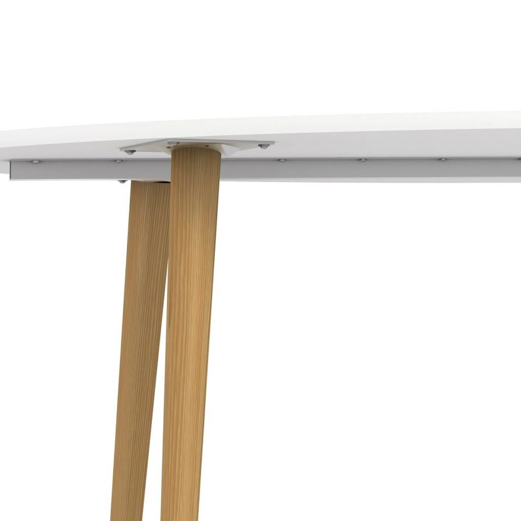 Kulatý jídelní stůl je navržený v skandinávském stylu a má velmi jednoduché provedení, které působí elegantním dojmem. Bude se hodit do každého interiéru díky svému jednoduchému a neutrálnímu barevnému zpracování. Deska stolu je v bílé barvě. Stojí na vysokých šikmých dřevěných nožkách taktéž v dekoru dub. Nábytek je vyrobený z kvalitního lamina (18 mm). Jídelní stůl patří do sektorové řady, ze které si lze složit stylový obývací pokoj, ložnici, předsíň či jídelnu. Ke stolu doporučujeme objednat jídelní žide z naší nabídky.
