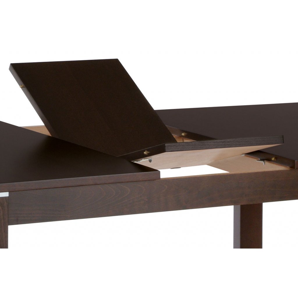 Jídelní stůl barva hnědá dekor ořech nohy dřevo deska dýha rozkládací moderní klasický styl obdelníkový pro 6 osob.