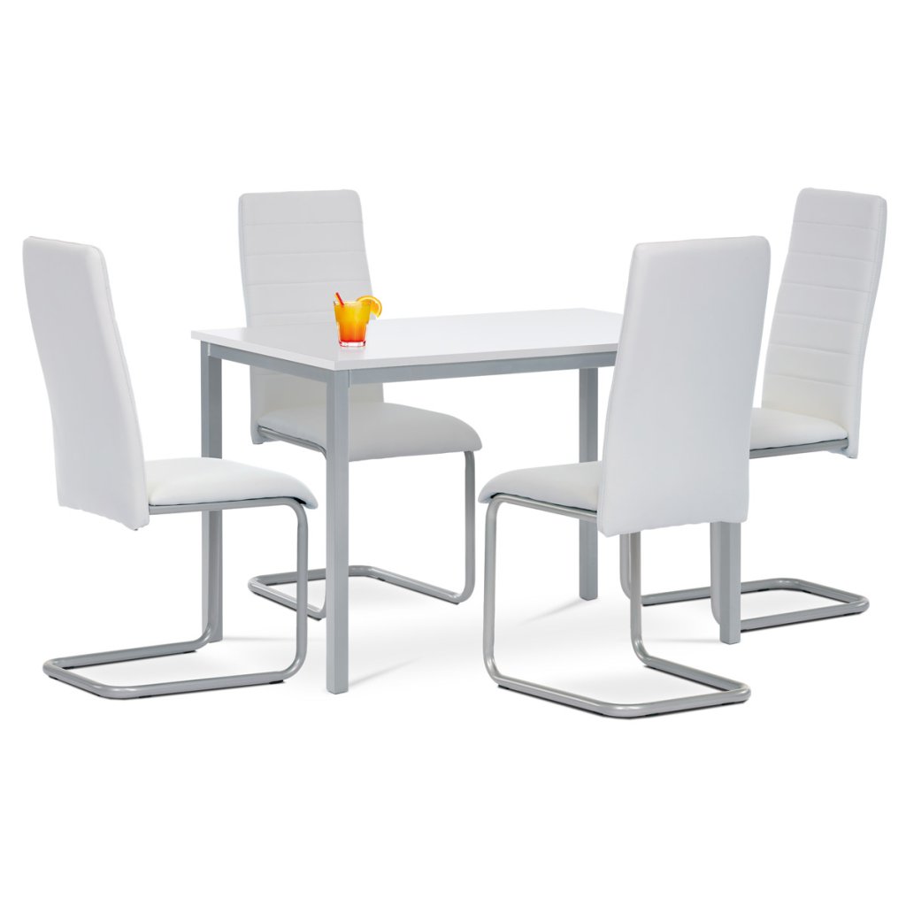 Jídelní židle potah bílá ekokůže kovová šedá podnož AJZ142B