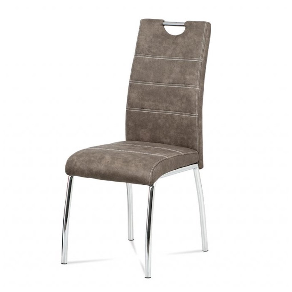 jídelní židle, látka hnědá, bílé prošití chrom AJZ178H