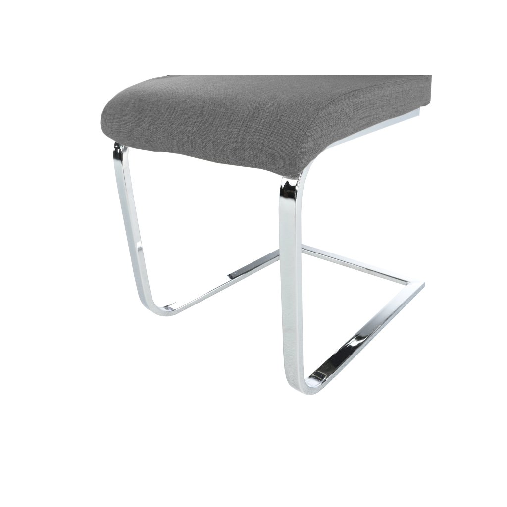Pohodlná jídelní židle v provedení tmavě šedé látky s chromovým rámem a vysokou opěrkou zad. Bude se Vám na ní dobře sedět při rodinných obědech či jiných událostech. Jednoduchý a čistý styl se hodí do každé kuchyně nebo jídelny. Moderní vzhled vytváří hlavně spodní řešení židle v podobě oblouku z kovu bez zadní opěry. Pokud máte rádi jinou barvu lze si vybrat z dalších dvou variant béžová nebo světle šedá. Dodáváno v demontu.