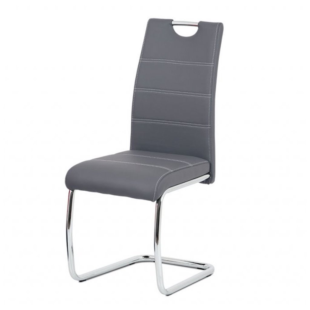 Jídelní židle čalouněná šedou ekokůží s bílým prošitím s kovovou konstrukcí HC-481 GREY