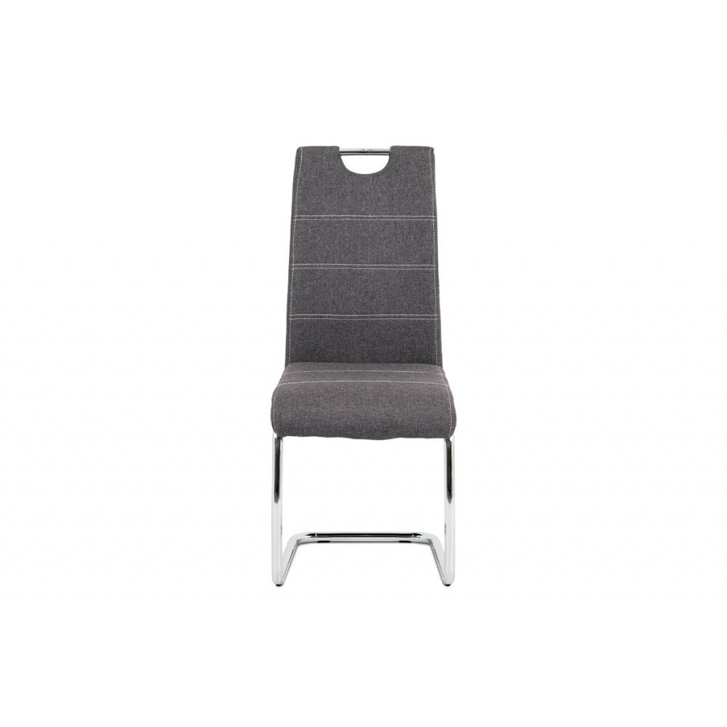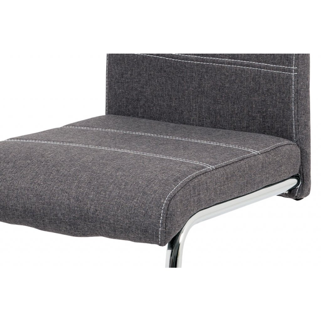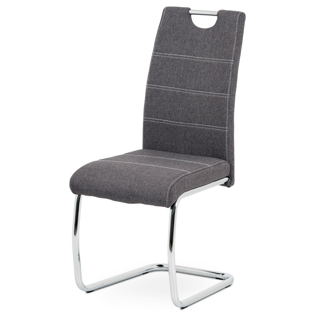 Jídelní židle čalouněná šedou látkou s bílým prošitím s kovovou konstrukcí HC-482 GREY2