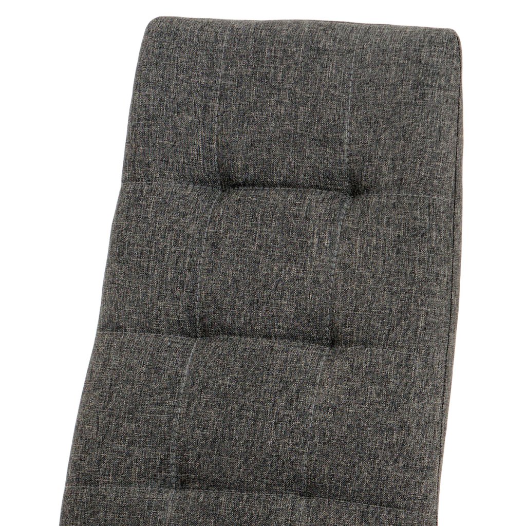 Moderní jídelní židle potažená příjemnou šedou látkou bude ozdobou Vaší jídelny, či kuchyně. Sedák i opěrák mají stylové prošití. Pevné kovové nohy na plastových kluzácích jsou lakované matným lakem antracitové barvy. Nosnost židle je až 110 kg.