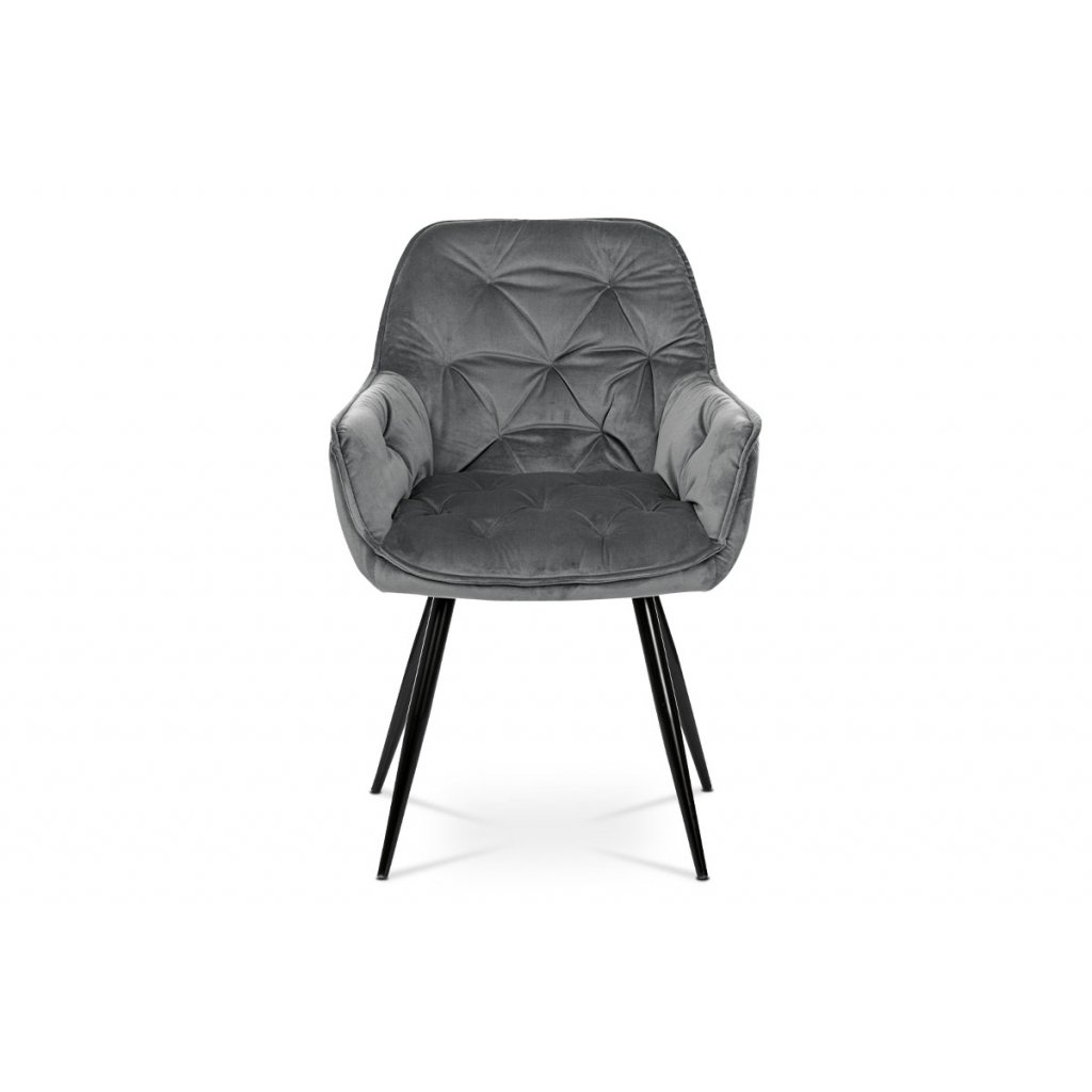 Jídelní židle, šedá sametová látka, kovová čtyřnohá podnož, černý matný lak